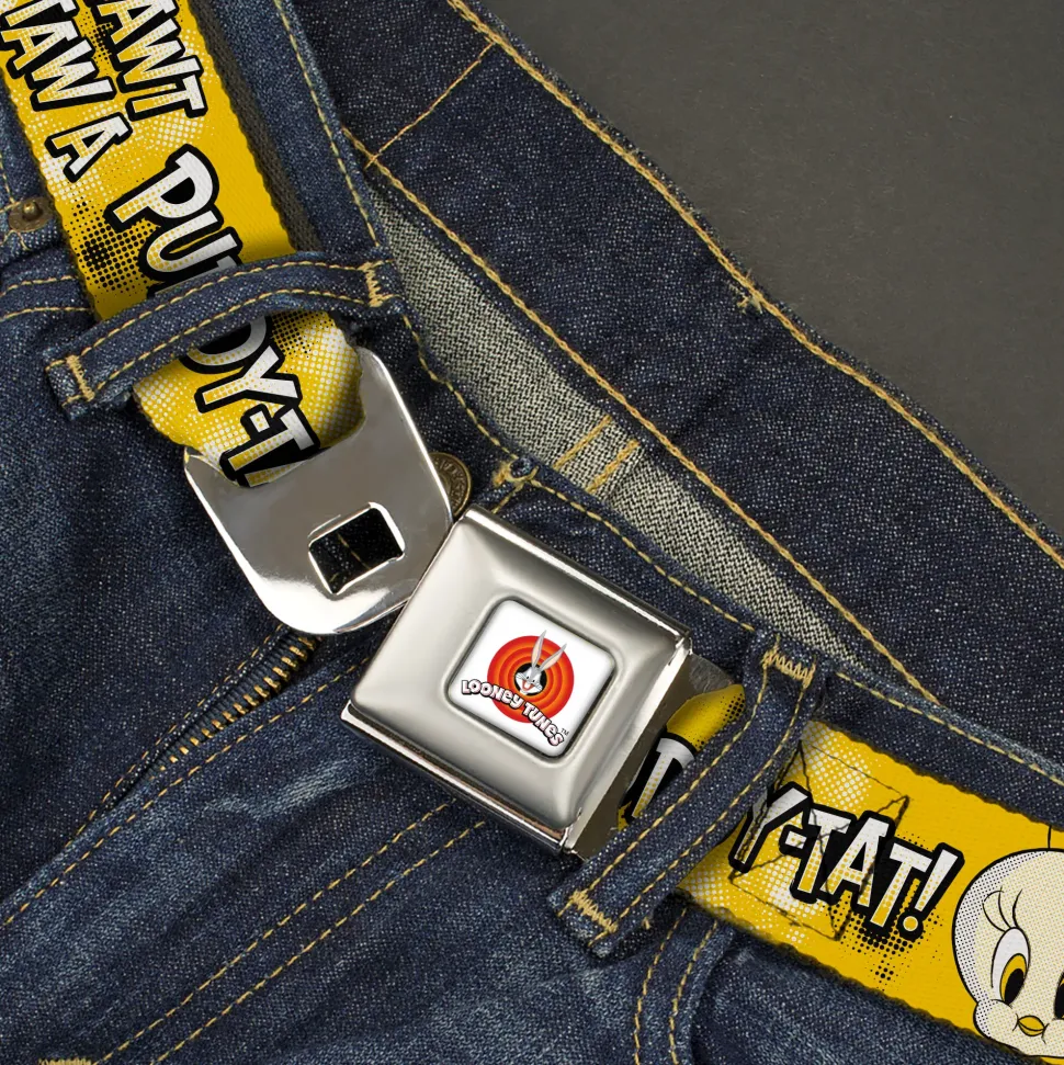 Buckle-Down’s iconic Seatbelt Belt is a cool, smart, and exciting blend of fashion and function. Always a conversation starter, our Seatbelt Belt adjusts to perfectly fit your waist while showcasing your unique sense of style. Our Seatbelt Belts are made with authentic automotive style seatbelt buckles making them easy to open and close at the push of a button. Our adult-size Seatbelt Belts are 1.5 inches wide and our kid-sized Seatbelt belts are 1.0 inch wide. This product is Handcrafted in USA by Buckle-Down Inc. and officially licensed by Looney Tunes.
