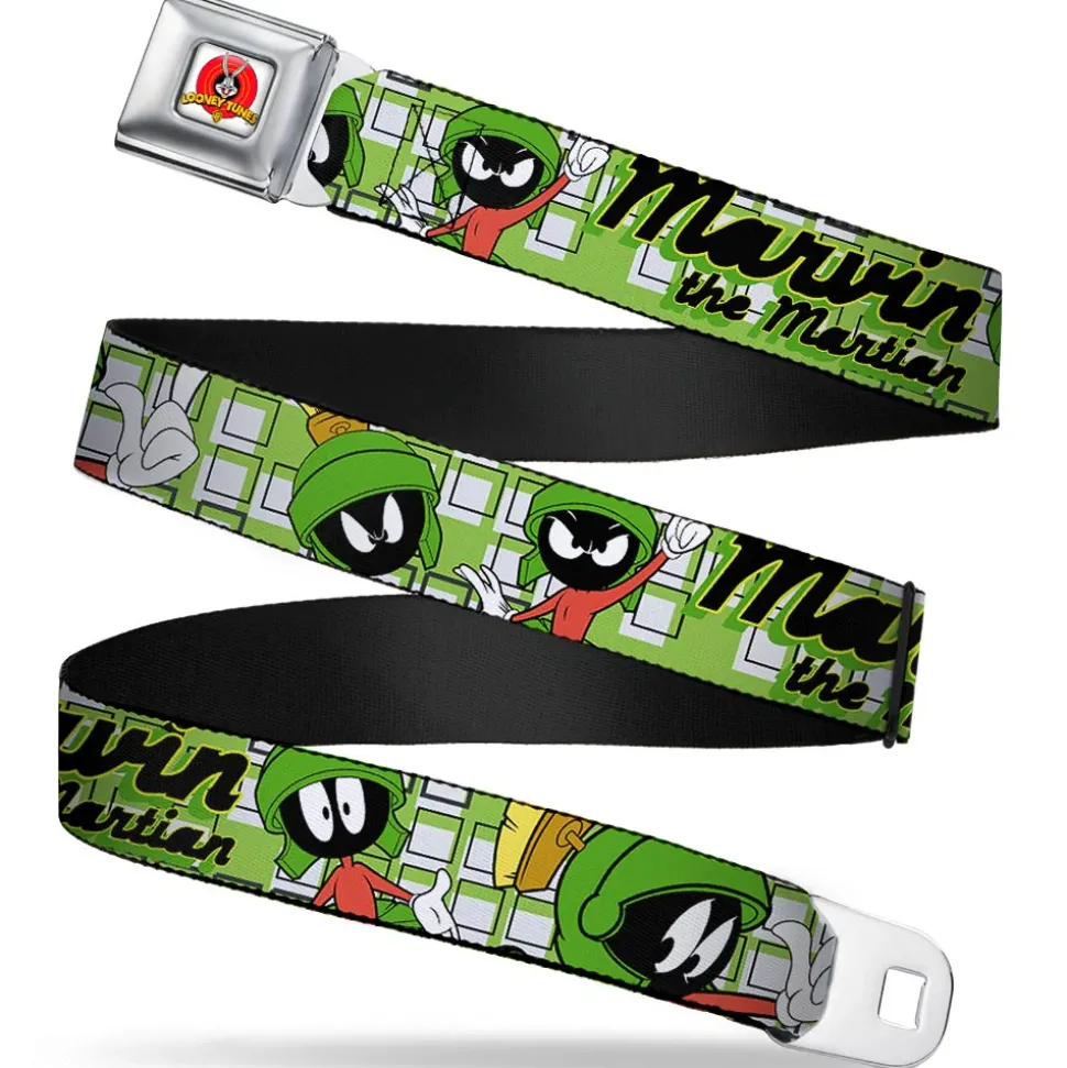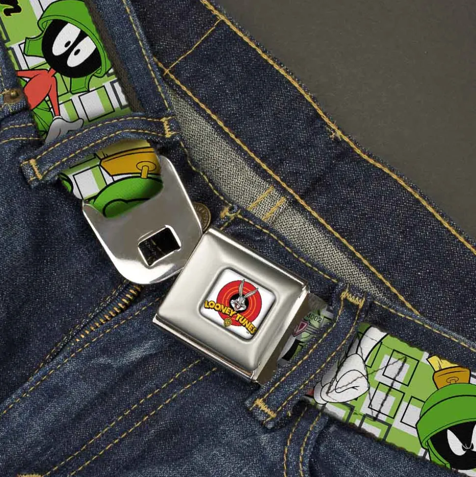 Looney Tunes Logo Full Color White Seatbelt Belt – MARVIN THE MARTIAN w/Poses White/Green Webbing