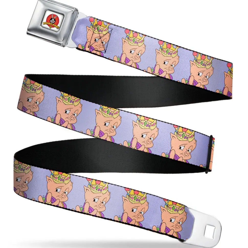 Looney Tunes Logo Full Color White Seatbelt Belt – Porky Pig Hip Hop Expression Lavender Webbing