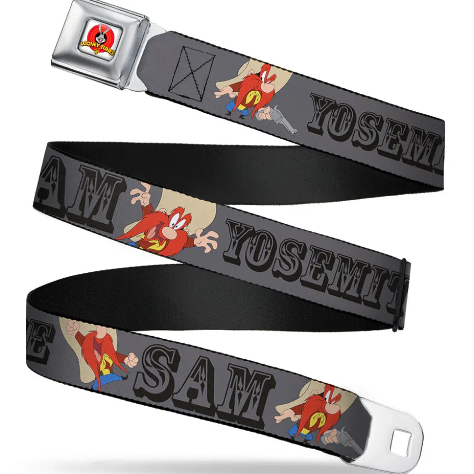 Looney Tunes Logo Full Color White Seatbelt Belt – YOSEMITE SAM w/Poses Gray Webbing