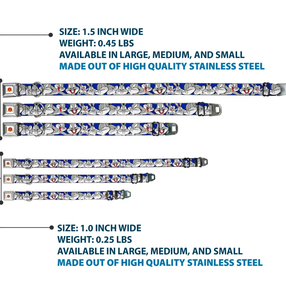Your dog will be the talk of the town when people notice they’re wearing this awesome SeatBelt Dog Collar! Made from high-density polyester and durable steel components, this collar is built to last. It features beautiful vibrant artwork. The buckle is a miniature authentic SeatBelt Buckle, so you press the center button to release the clasp. This product is Made in USA by Buckle-Down Inc. and officially licensed by Looney Tunes.