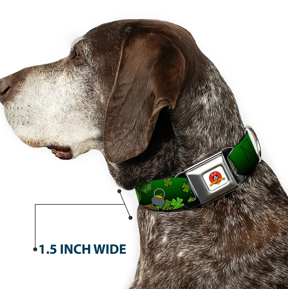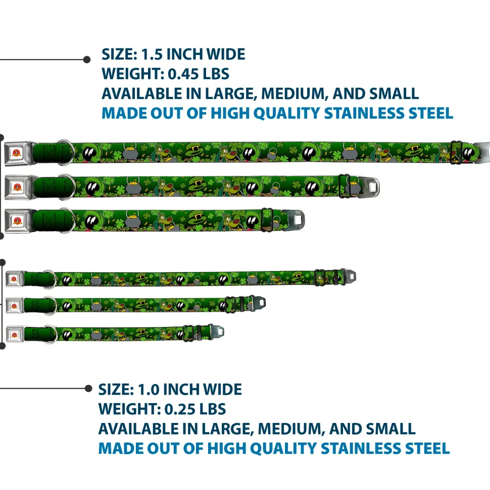Looney Tunes Logo Full Color White Seatbelt Buckle Collar – Marvin the Martian & K-9 Poses/Clovers Greens