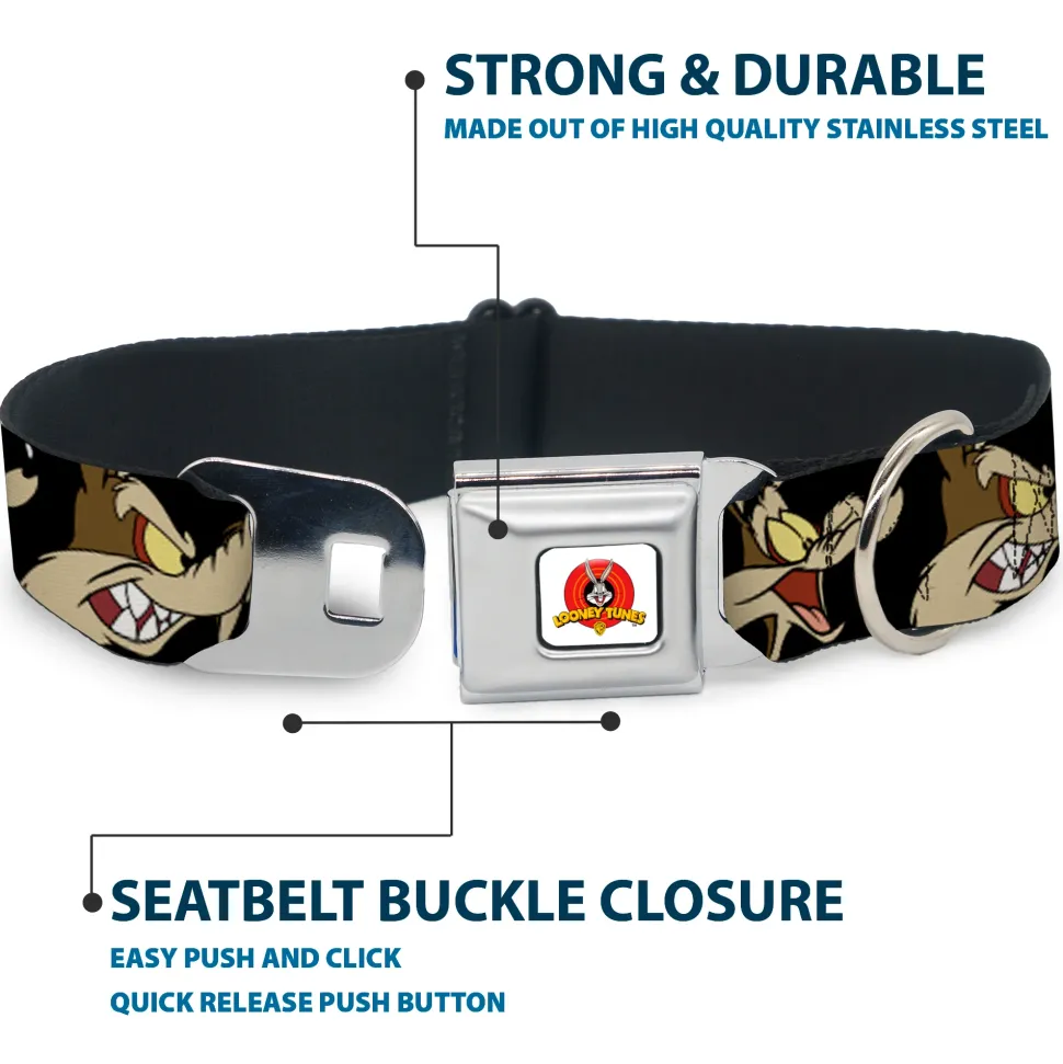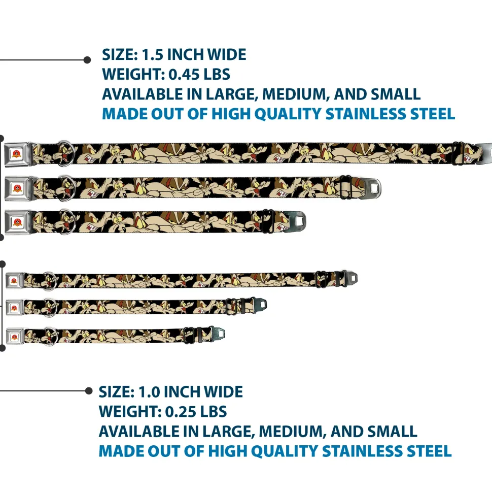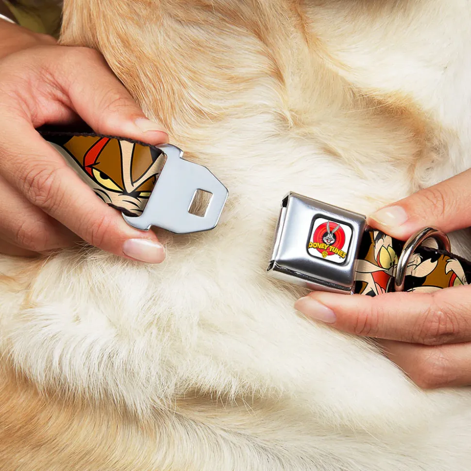 Your dog will be the talk of the town when people notice they’re wearing this awesome SeatBelt Dog Collar! Made from high-density polyester and durable steel components, this collar is built to last. It features beautiful vibrant artwork. The buckle is a miniature authentic SeatBelt Buckle, so you press the center button to release the clasp. This product is Made in USA by Buckle-Down Inc. and officially licensed by Looney Tunes.