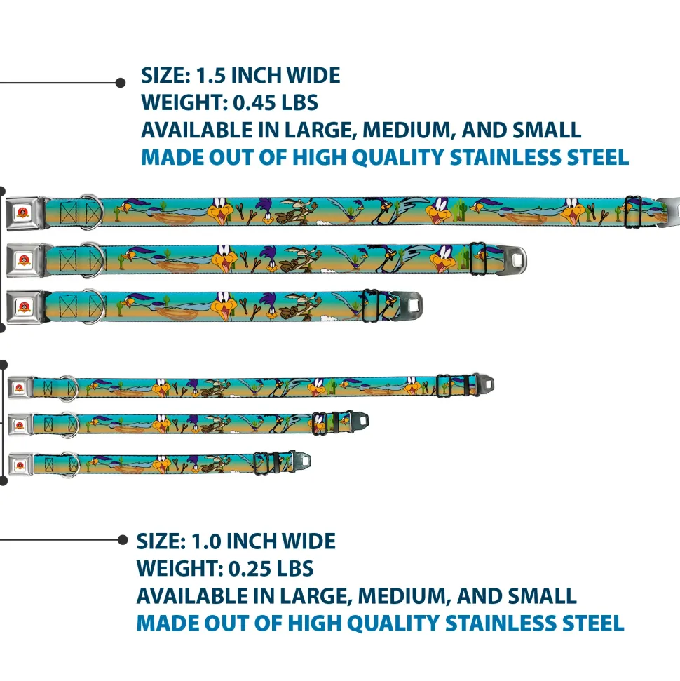 Looney Tunes Logo White Seatbelt Buckle Collar – Road Runner/Wile E. Coyote Scene1 Desert