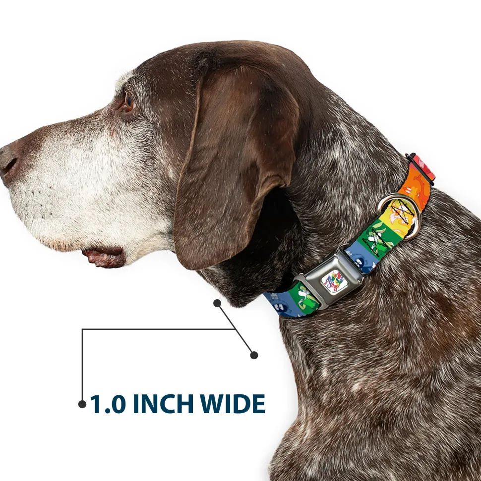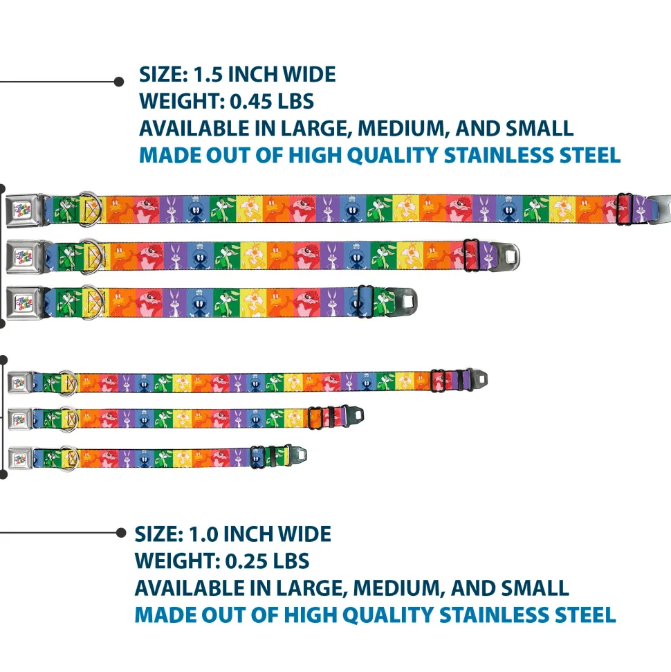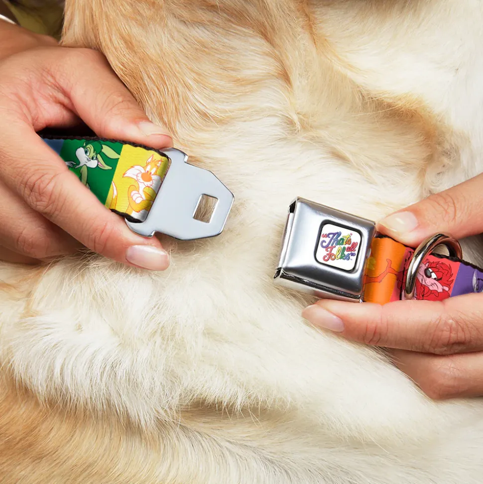 Looney Tunes THAT'S ALL FOLKS Script Full Color White/Multi Color Seatbelt Buckle Collar – Looney Tunes 6-Character Pose Pride Blocks Multi Color