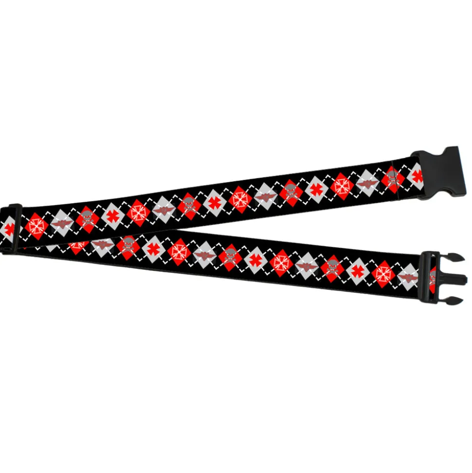 Luggage Strap Adjustable from 40 to 71 Inches and 2 Inches Wide. Made from high-density polyester and a plastic clip which is overengineered in thickness, ensuring it will hold up to your travel needs. This luggage strap is the perfect way to identify your luggage from afar. This product is Officially Licensed by Buckle-Down.