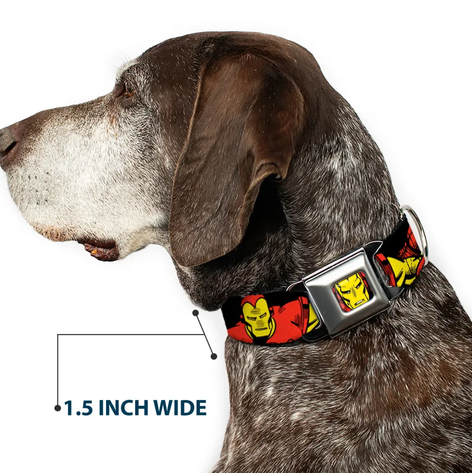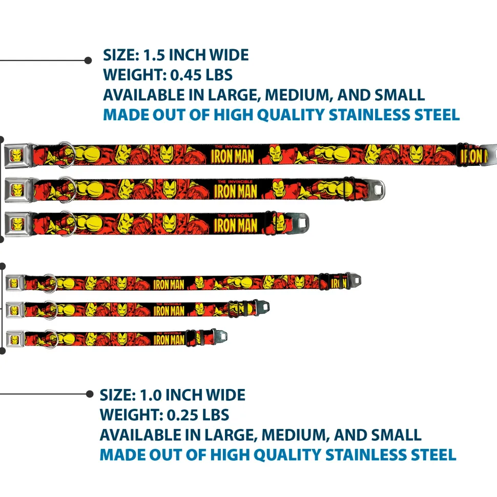 MARVEL COMICS Iron Man Face Full Color Red Yellow Seatbelt Buckle Collar – THE INVINCIBLE IRON MAN Action Poses Black/Red/Yellow
