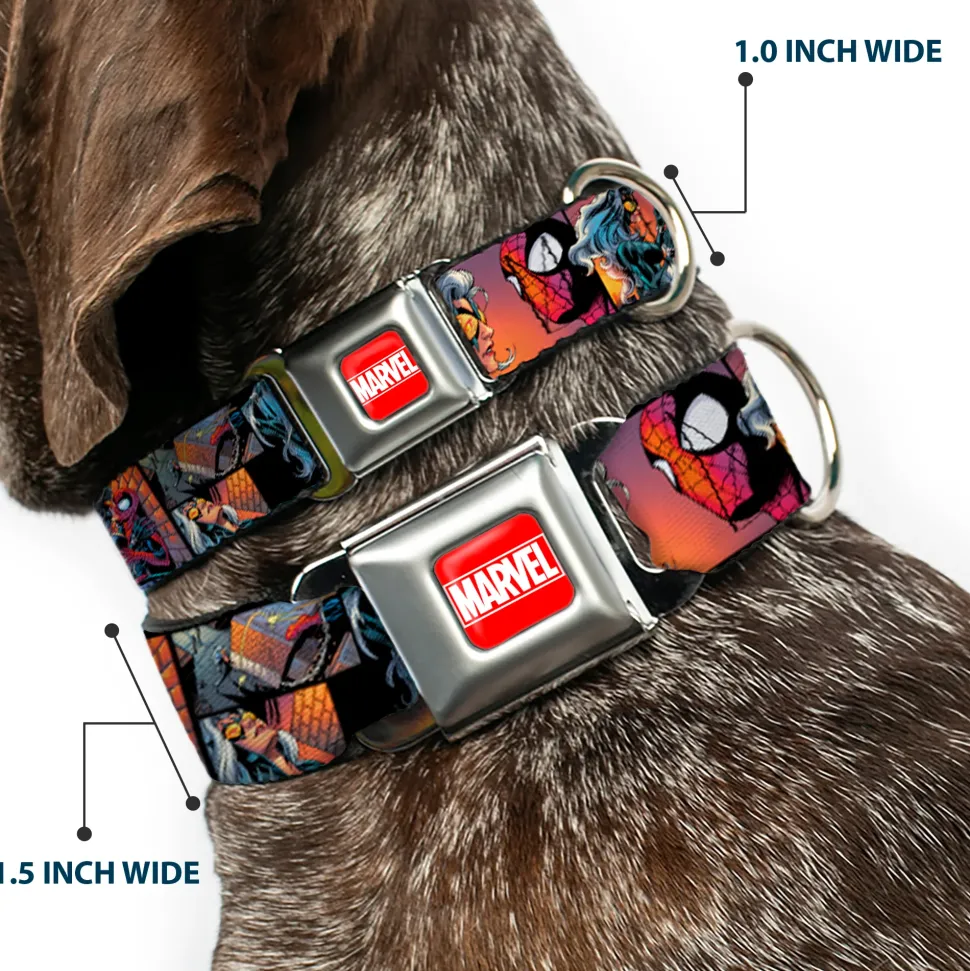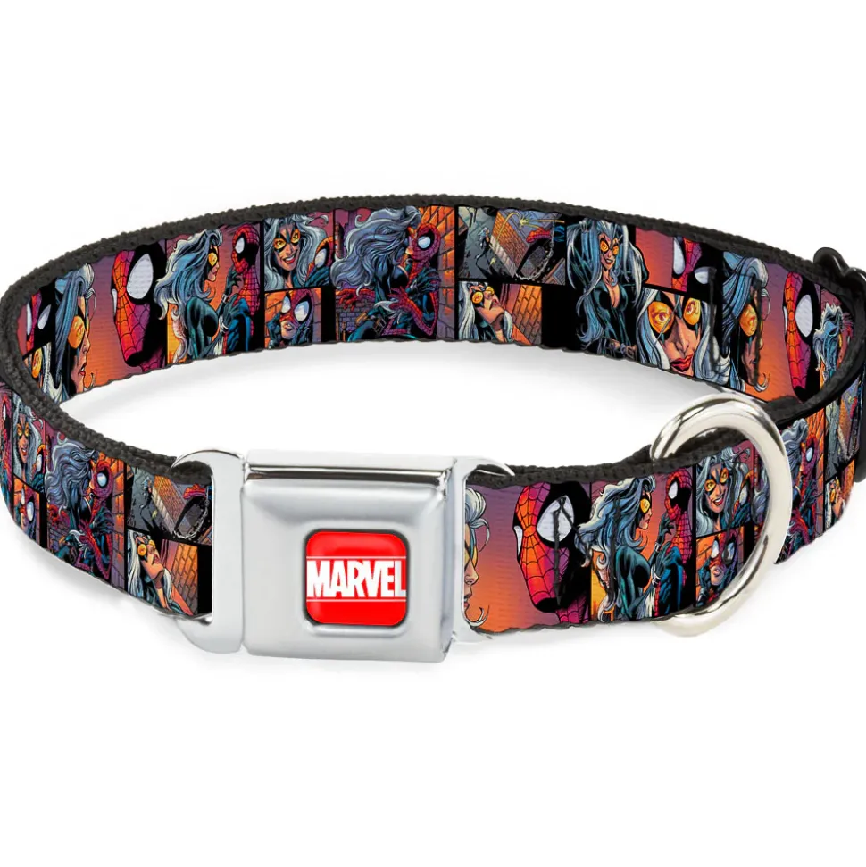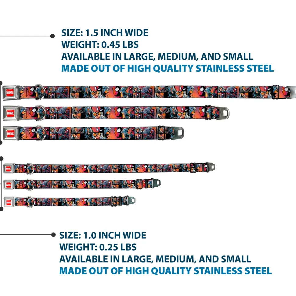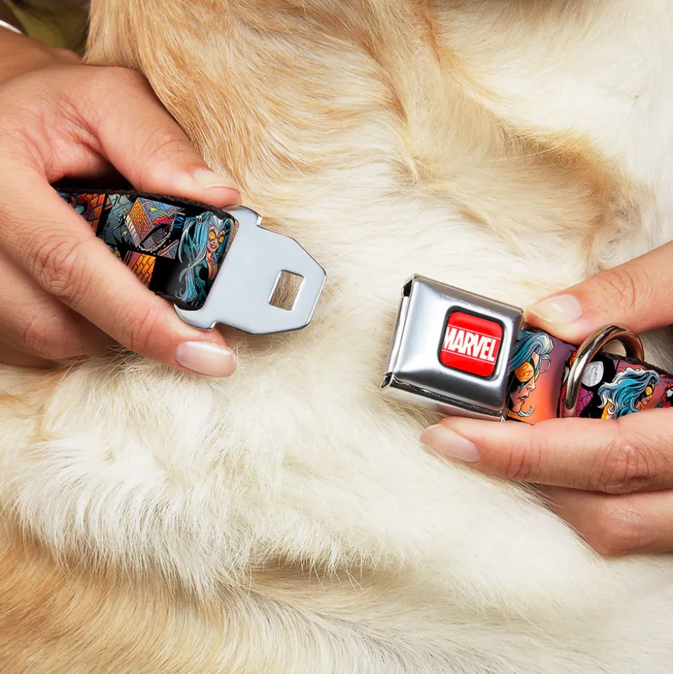 Your dog will be the talk of the town when people notice they’re wearing this awesome SeatBelt Dog Collar! Made from high-density polyester and durable steel components, this collar is built to last. It features beautiful vibrant artwork. The buckle is a miniature authentic SeatBelt Buckle, so you press the center button to release the clasp. This product is Made in USA by Buckle-Down Inc. and officially licensed by Marvel Comics.