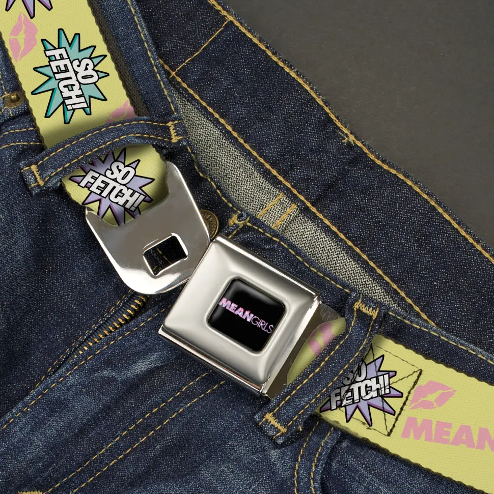 MEAN GIRLS Title Logo Full Color Black/White Seatbelt Belt – MEAN GIRLS Title Logo SO FETCH! Quote Collage Yellow/Pink/Blue Webbing
