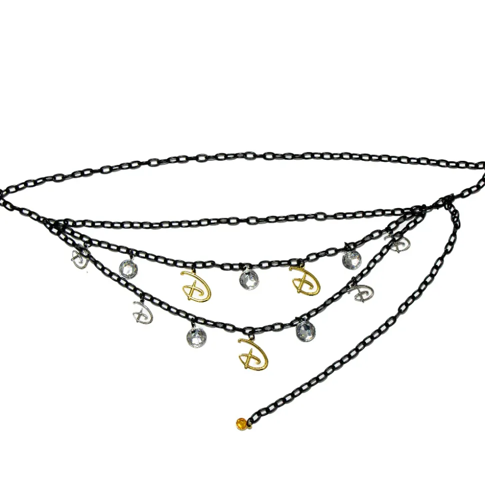- This Disney Signature D belt is made with a metal chain, enamel charms, and rhinestones.