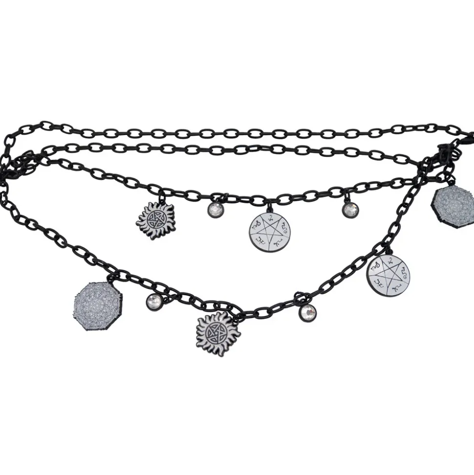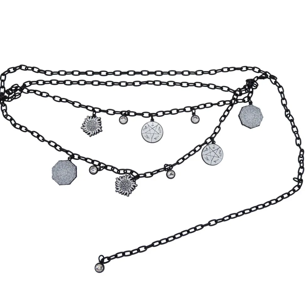 - This Supernatural Television Series belt is made with a metal chain, enamel charms, and rhinestones.