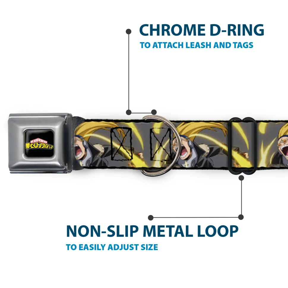 MY HERO ACADEMIA Title Logo Full Color Black Seatbelt Buckle Collar – My Hero Academia Hizashi Yamada Present Mic Screaming Pose Gray