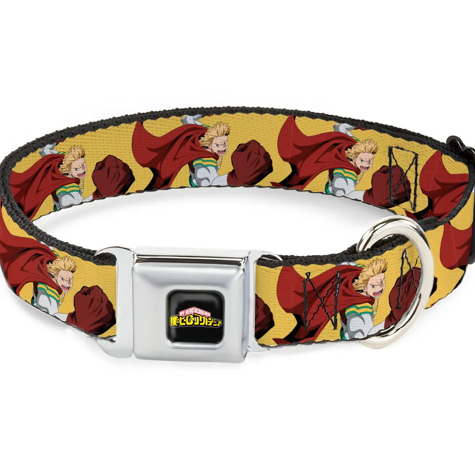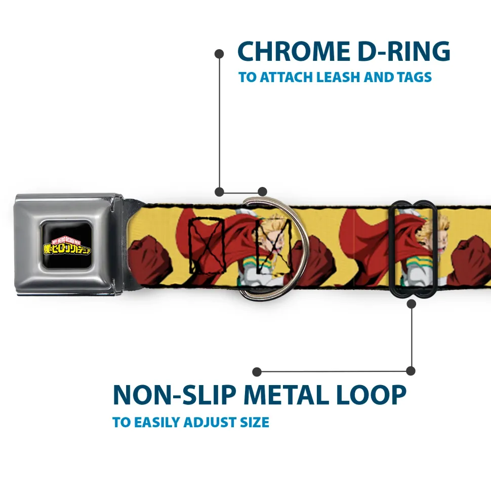 MY HERO ACADEMIA Title Logo Full Color Black Seatbelt Buckle Collar – My Hero Academia Mirio Togata Upper Cut Pose Yellow