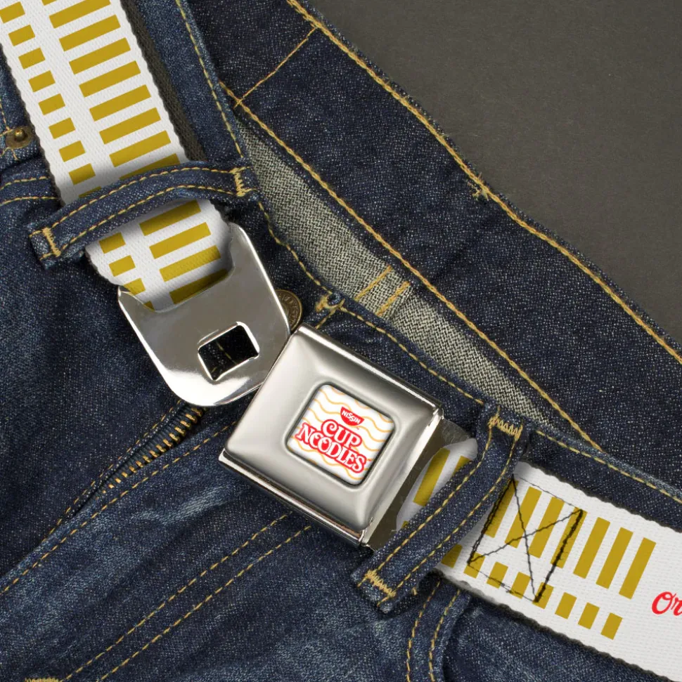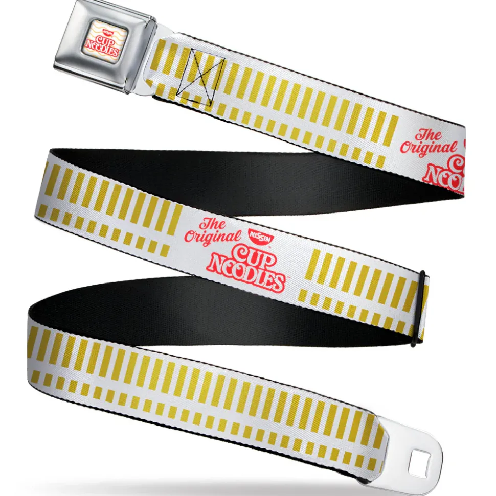NISSIN CUP NOODLES Logo/Noodle Wave Full Color White/Orange/Red Seatbelt Belt – THE ORIGINAL CUP NOODLES Caterpillar Striping White/Red/Gold Webbing