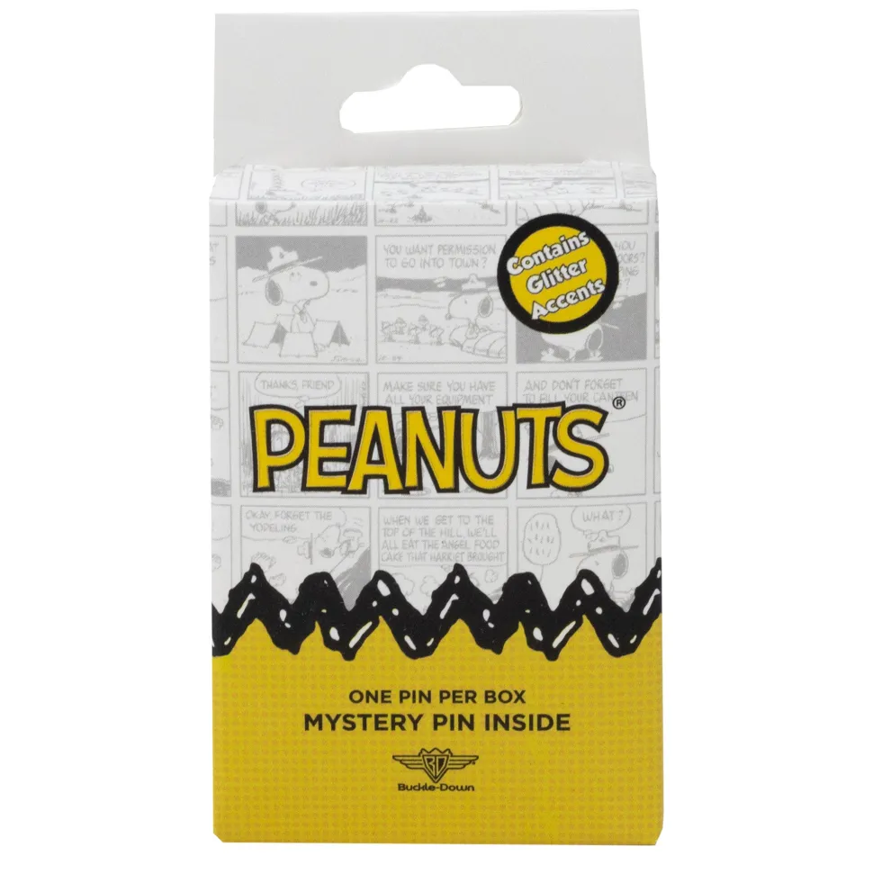 - Each Peanuts Collectible Pin Blind Box contains a hard enamel pin featuring glitter accents bearing a random mystery icon from the Peanuts series!