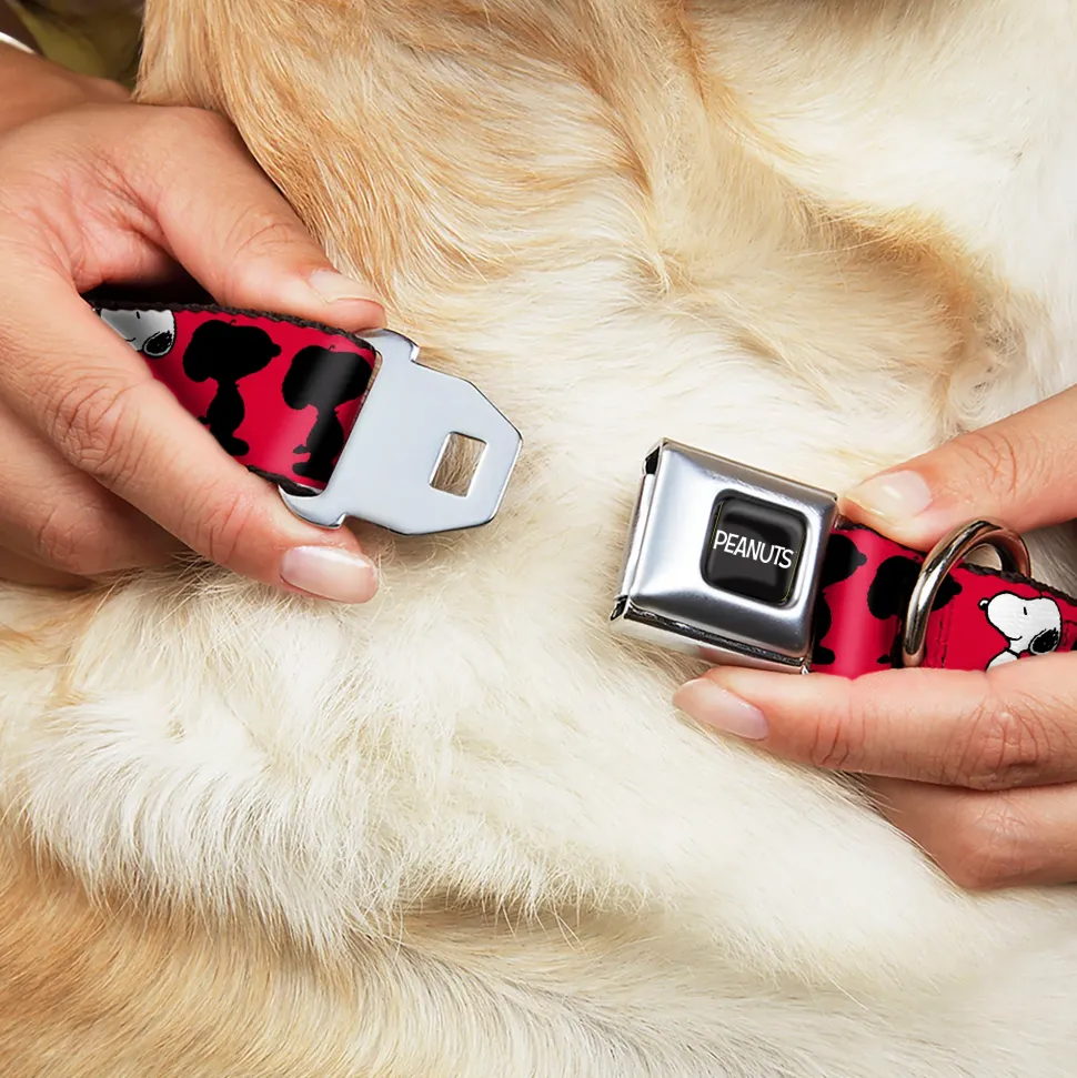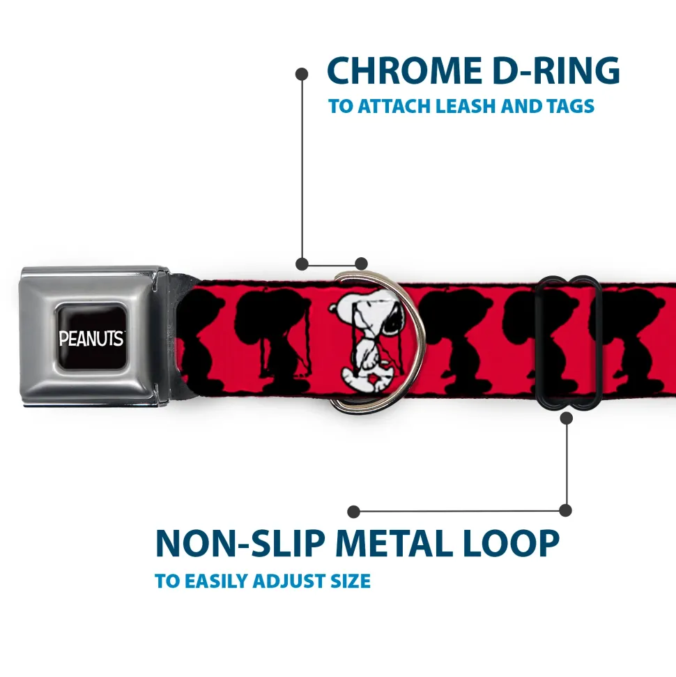 PEANUTS Title Logo Full Color Black/White Seatbelt Buckle Collar – Peanuts Snoopy Walking/Silhouette Pose Red/Black/White