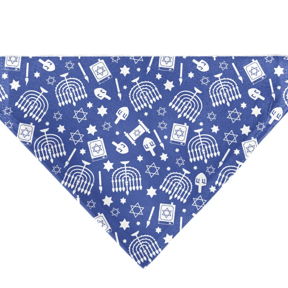 Pet Bandana - Hanukkah Holiday Symbols Blue/White