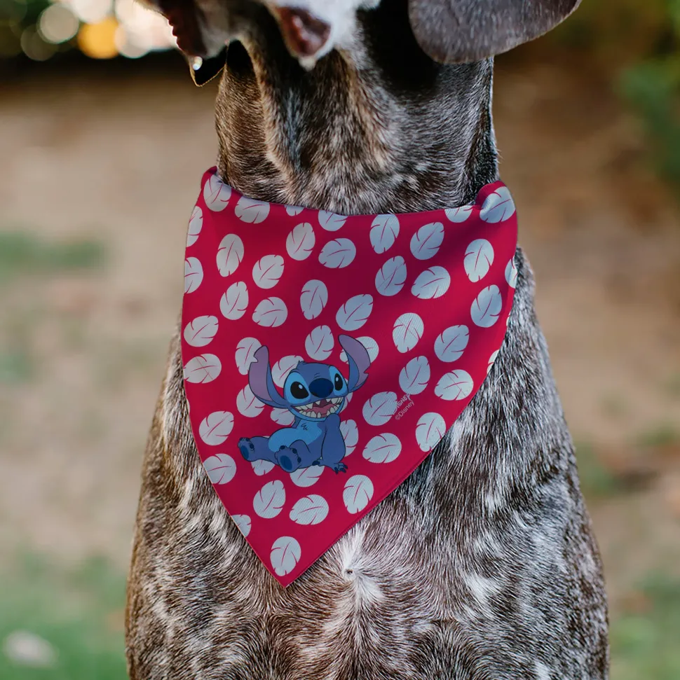 Pet Bandana - Lilo Dress Leaves & Stitch Sitting Pose Red/White