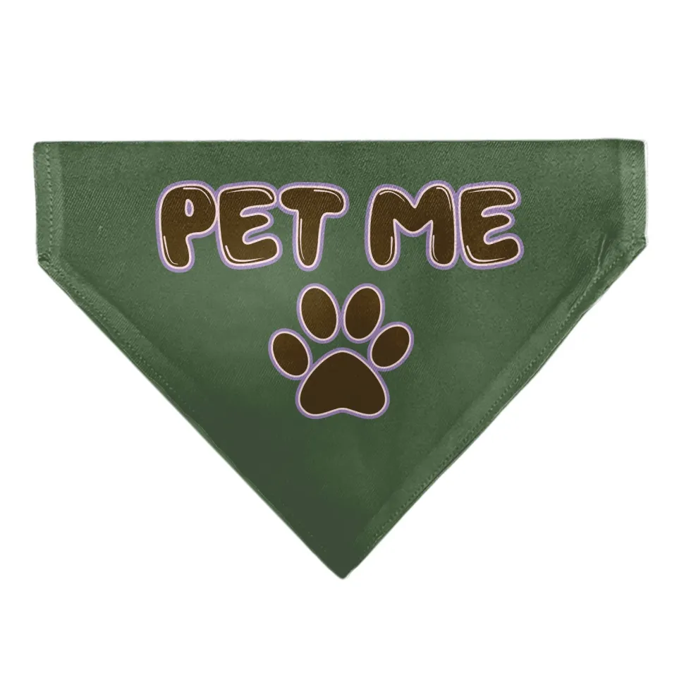 Pet Bandana - PET ME Text and Paw Olive/Pinks/Brown