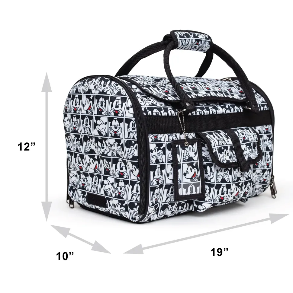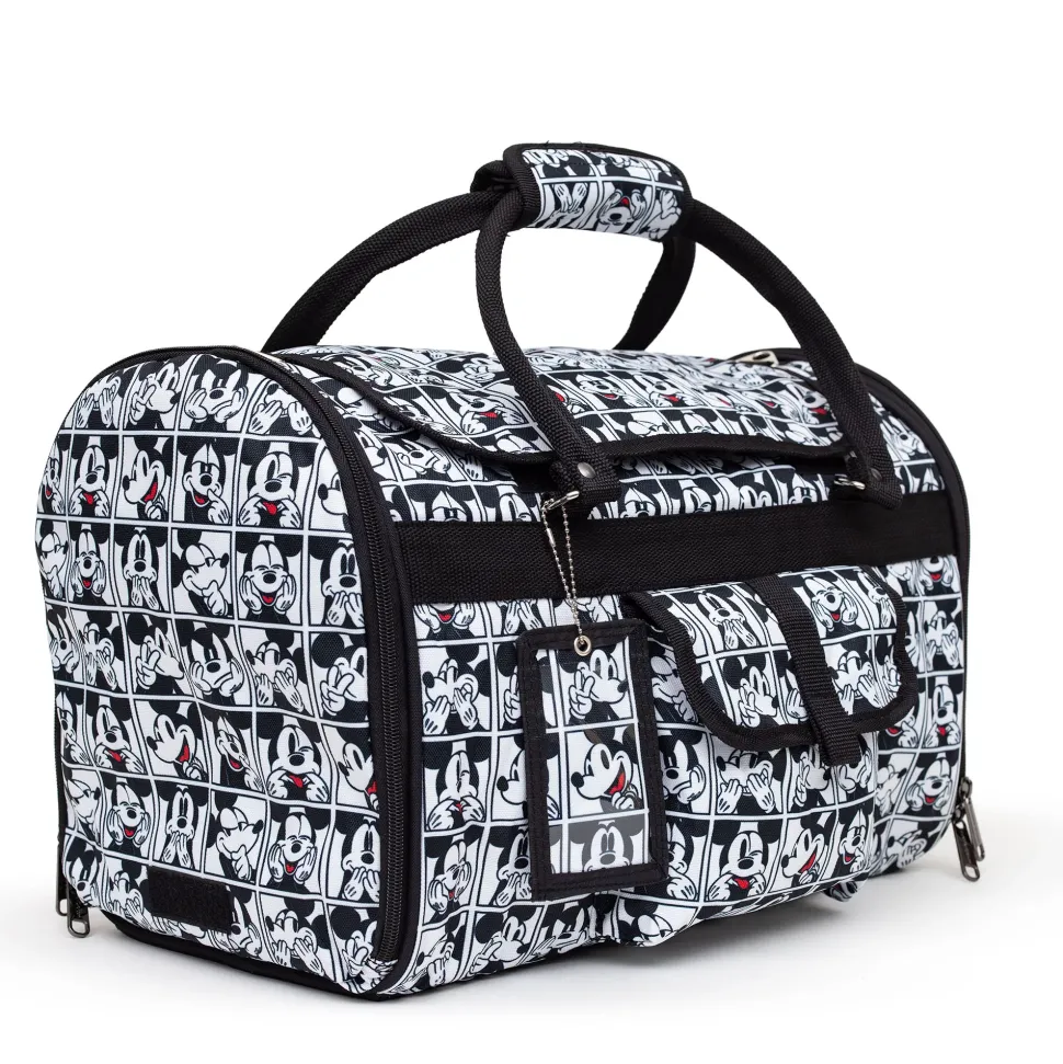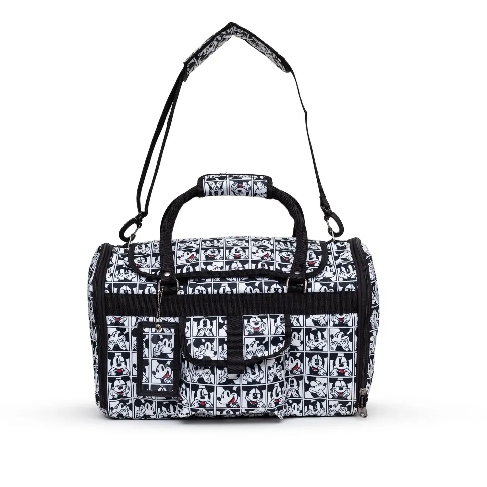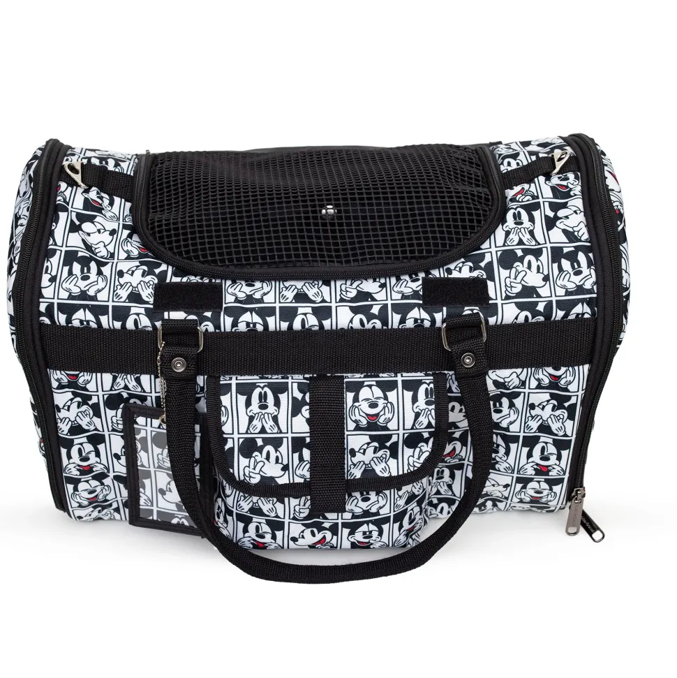 - Features two tote-style handles with removeable shoulder strap for easy carrying; additional pocket for treats, small toys, and other essentials; a collar anchor clip for added security; and an adorable Mickey Mouse ID tag.