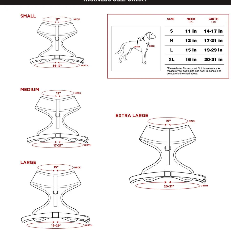 - Made with durable polyester, this harness also features soft air-mesh padding for added comfort.