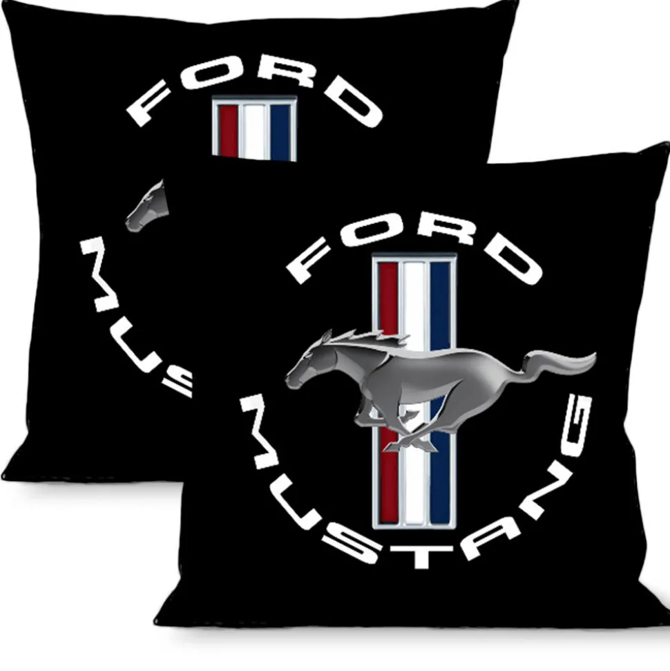 Pillow – THROW – FORD MUSTANG Tri-Bar Logo Black White Silver Red Blue