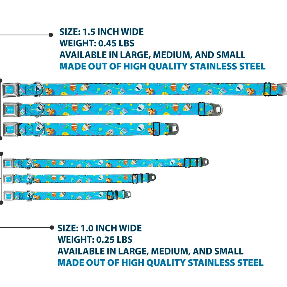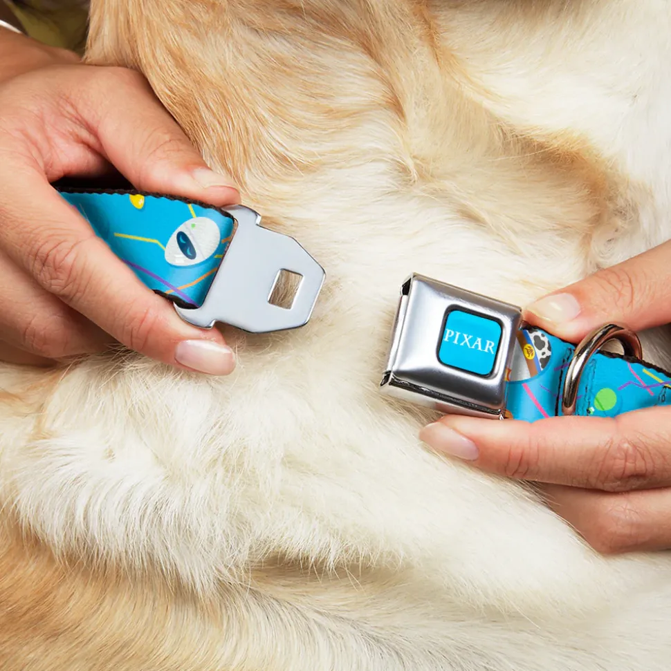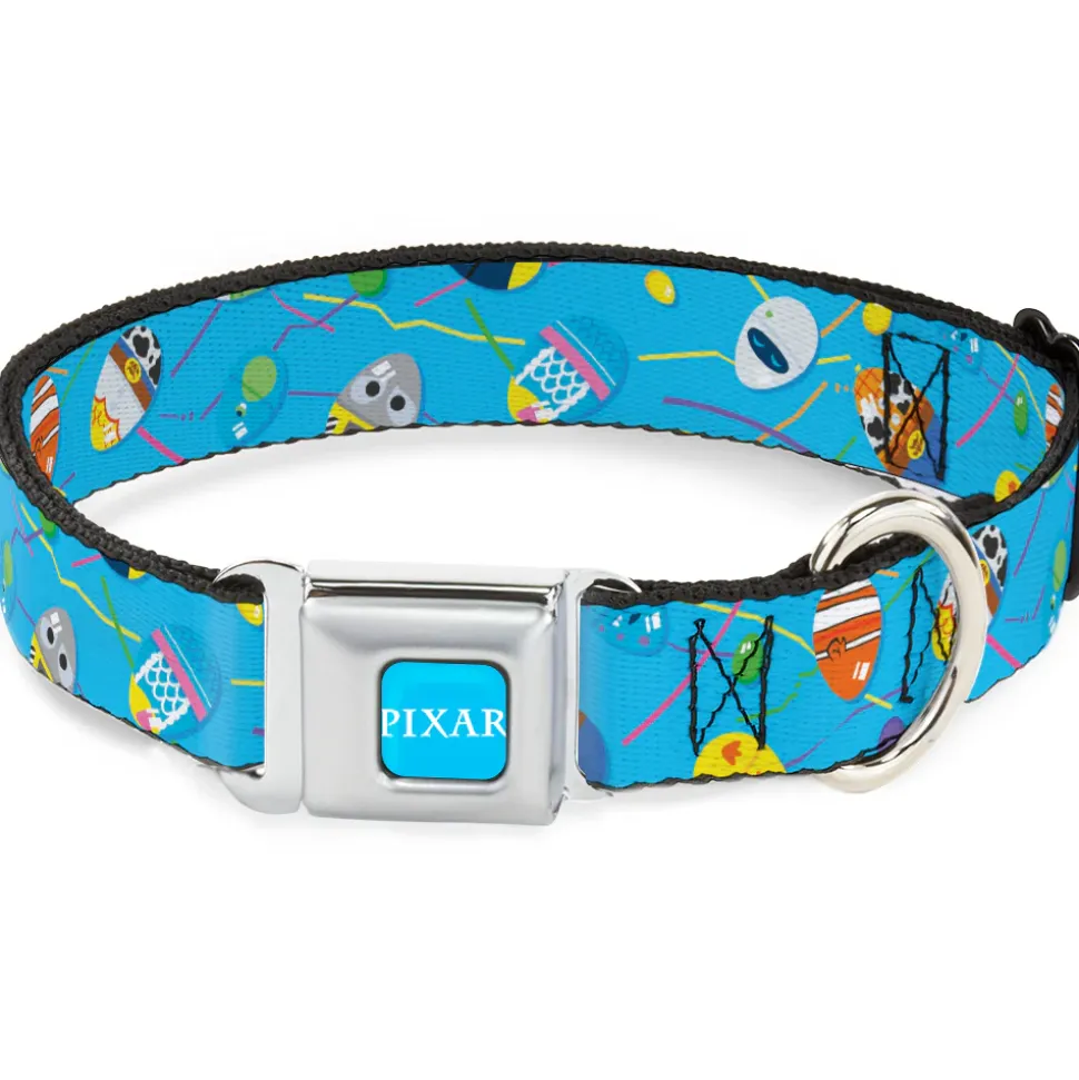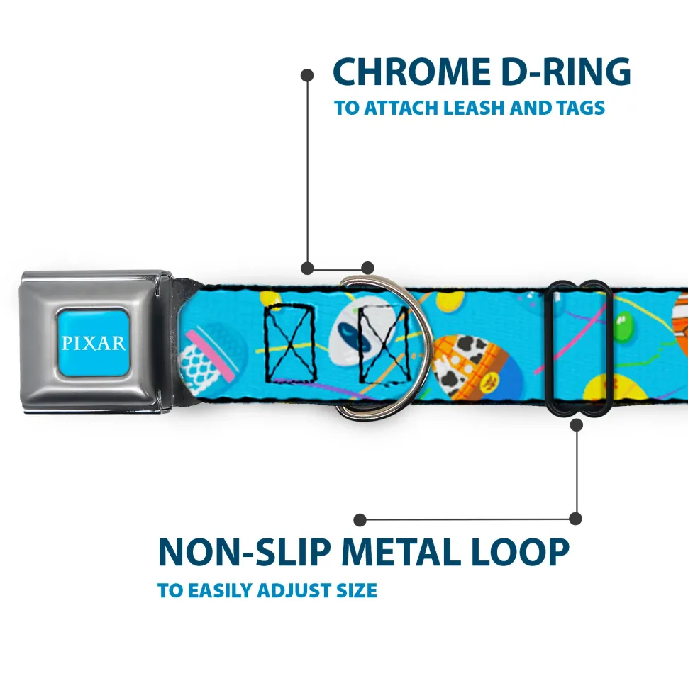 PIXAR Title Logo Full Color Blue/White Seatbelt Buckle Collar – Pixar Holiday Collection Easter Egg Characters Scattered Blue