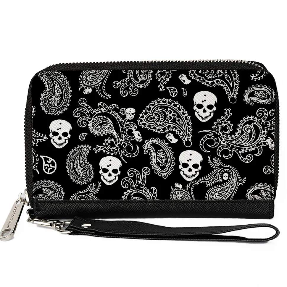 PU Zip Around Wallet Rectangle – Bandana/Skulls Black/White