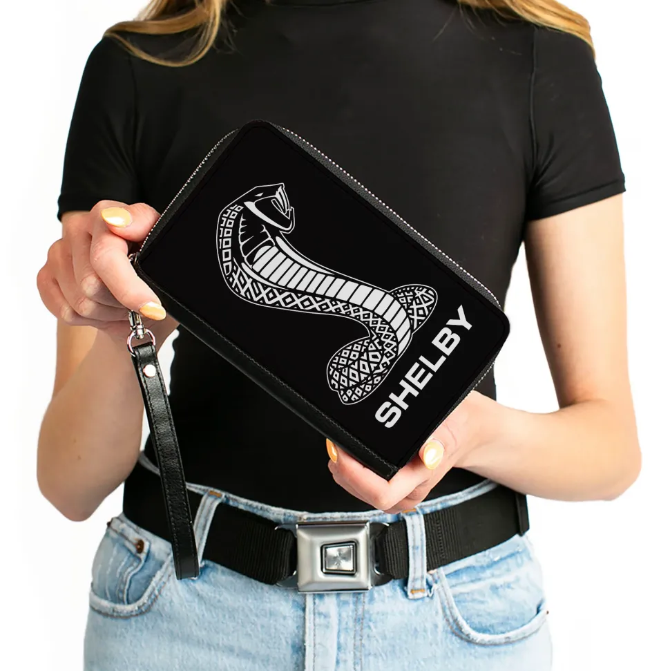 PU Zip Around Wallet Rectangle – Carroll Shelby Super Snake SHELBY Tiffany Logo Black/White