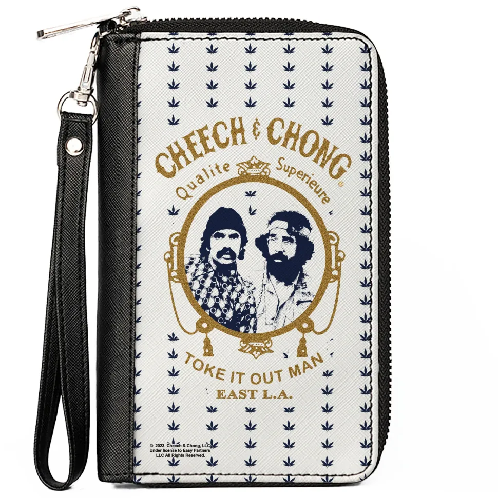 You’re going to love this wallet! Stylish and sleek this zip around wallet is made from premium vegan leather. It measures 7.5×4.5×1.0 Inches and features 2 billfolds, 6 card slots, 1 coin zipper, 1 windowed ID holder slot and a detachable wristlet strap for easy carrying. This wallet is spacious enough to carry large smartphones such as the iPhone 8 Plus, iPhone 11 Max. Galaxy Note 10 Plus and more! The gorgeous artwork is applied using the latest printing technology so it will hold up well over time. This product is Made in USA by Buckle-Down Inc. and Officially Licensed by Cheech & Chong.