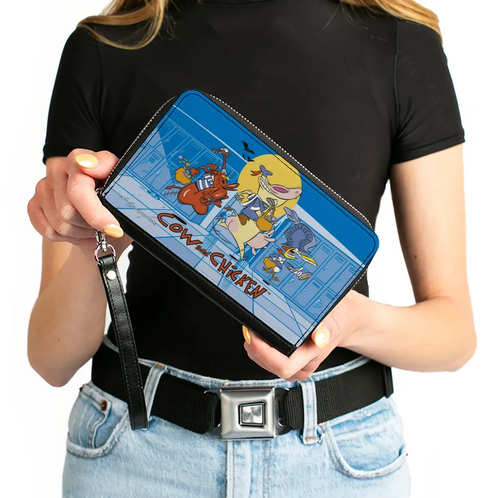 PU Zip Around Wallet Rectangle – COW AND CHICKEN with Red Guy Running Pose and Title Logo Blues