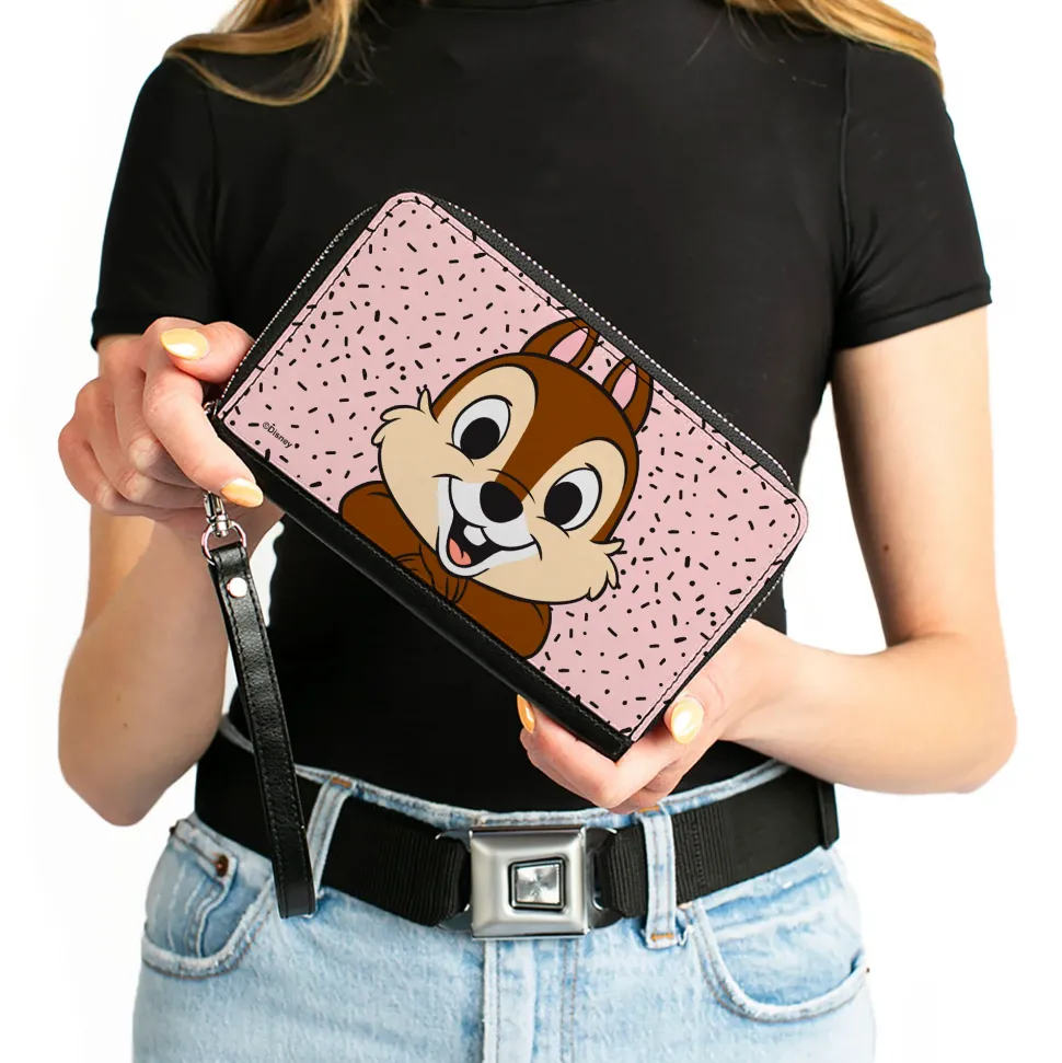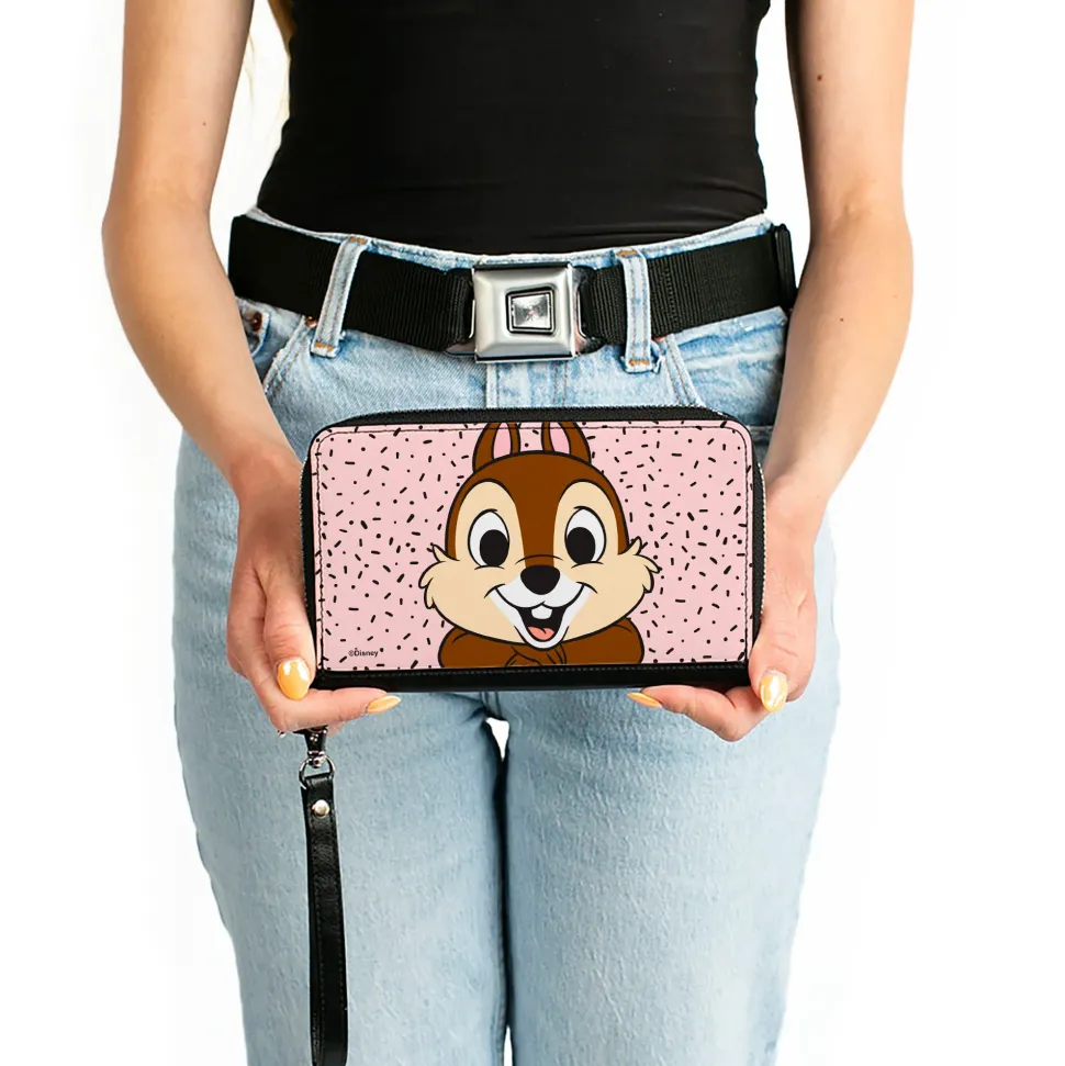 PU Zip Around Wallet Rectangle – Disney Chip n' Dale Chip Smiling Pose Sprinkle Pink Black