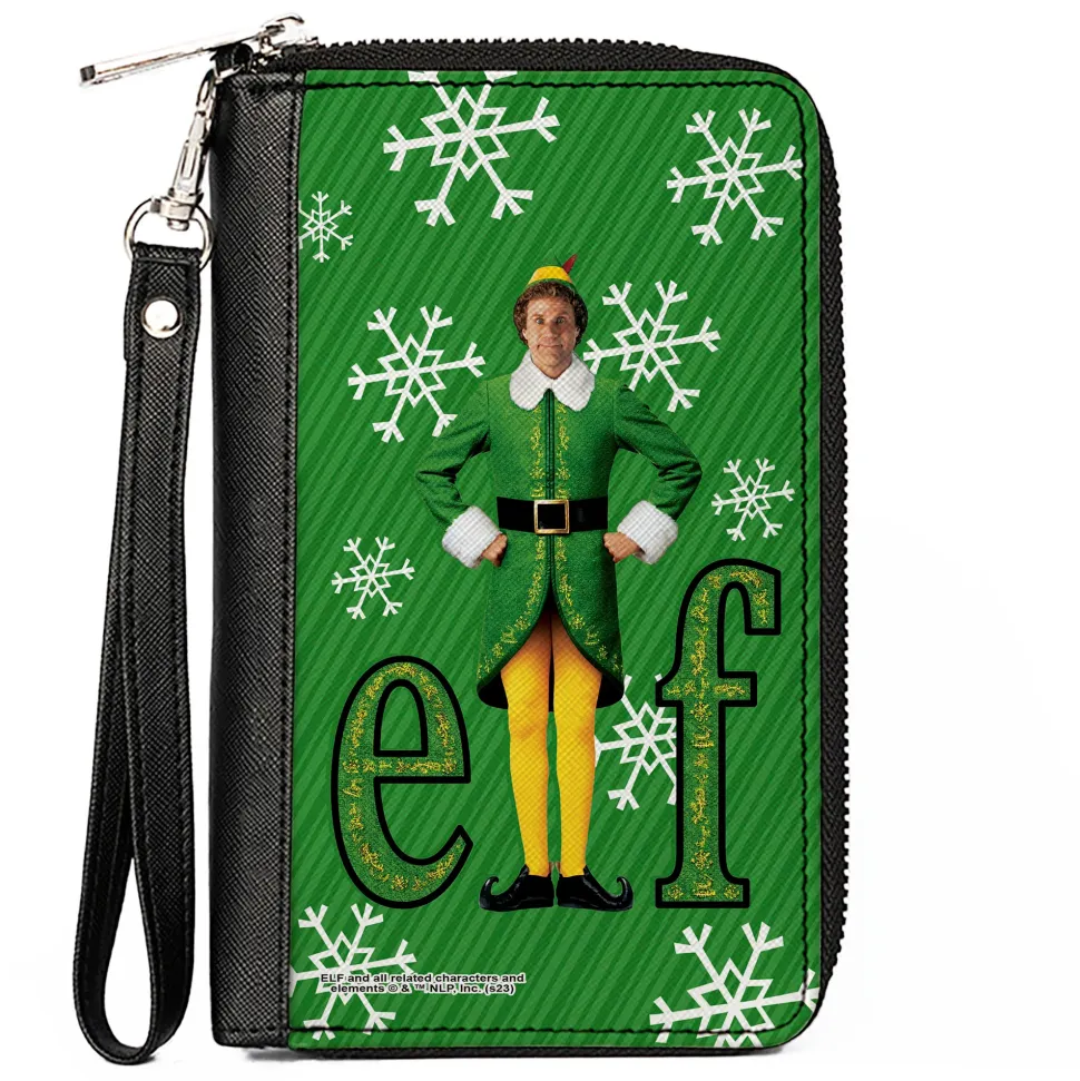 PU Zip Around Wallet Rectangle – Elf Buddy the Elf Logo Pose Snowflakes Greens/White