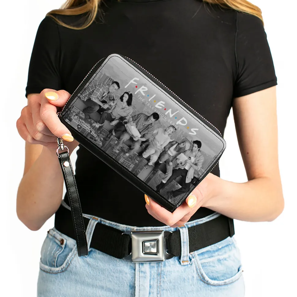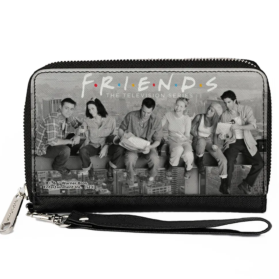 PU Zip Around Wallet Rectangle - FRIENDS 6-Character Lunch on a Skyscraper Vivid Grays