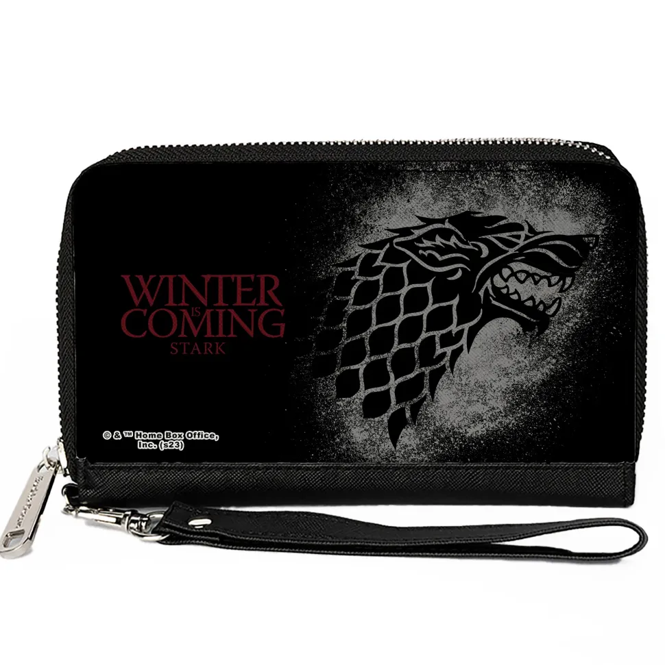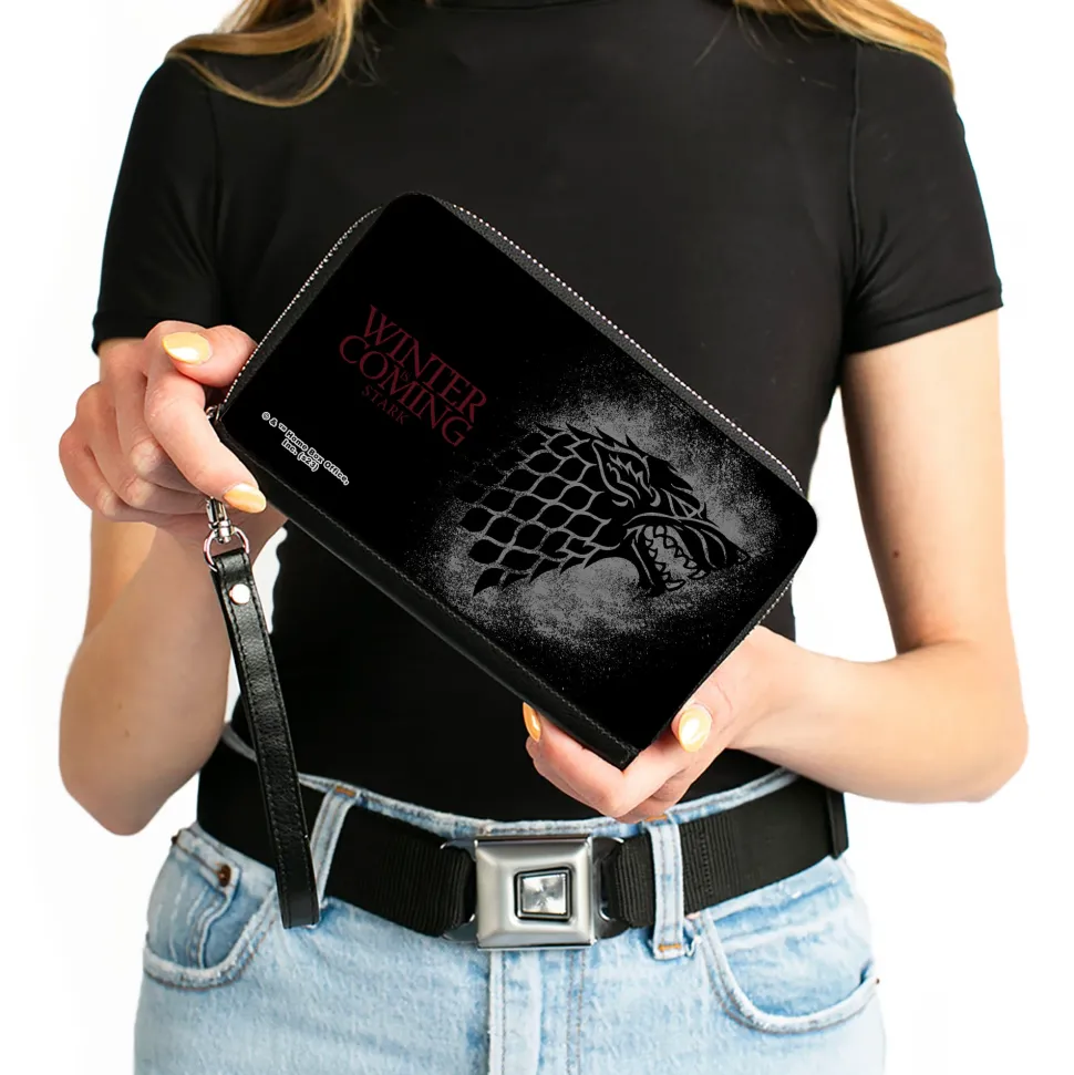 PU Zip Around Wallet Rectangle - Game of Thrones House Stark Sigil WINTER IS COMING STARK Black/Gray/Red