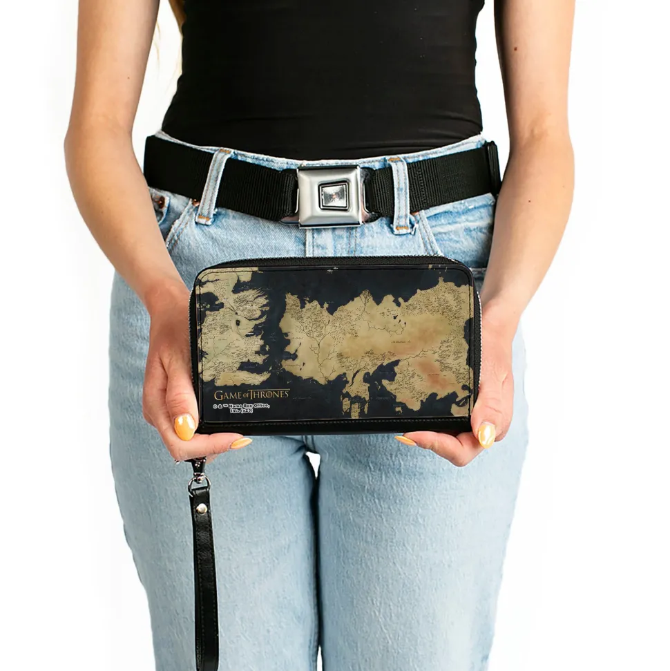 PU Zip Around Wallet Rectangle – GAME OF THRONES World Map Westeros and Essos Grays/Tans