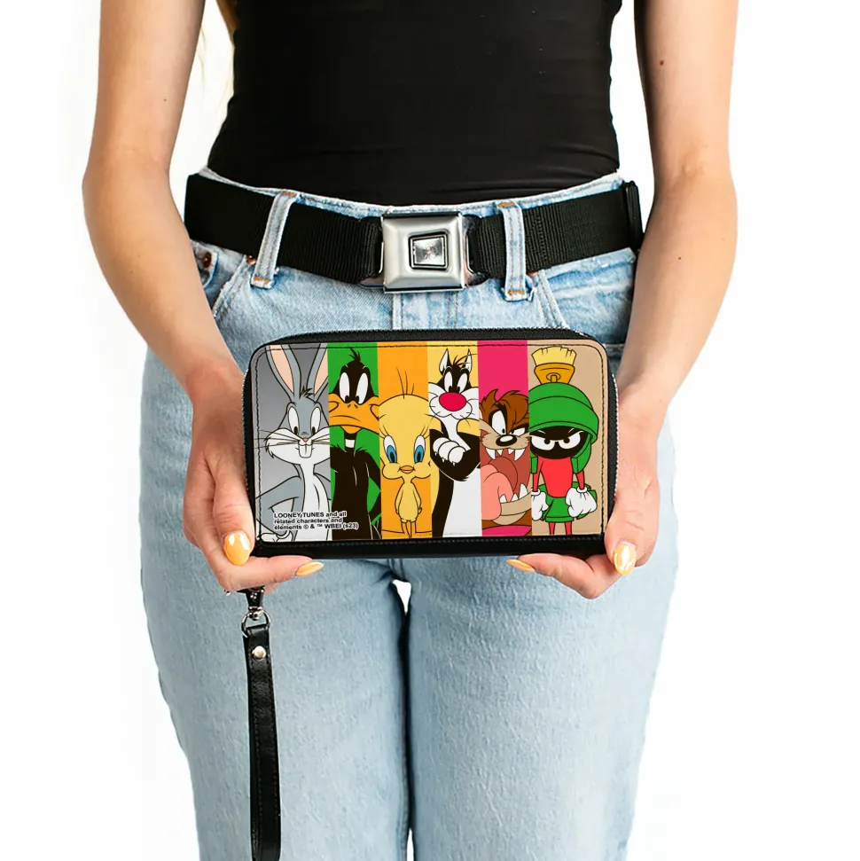 You’re going to love this wallet! Stylish and sleek this zip around wallet is made from premium vegan leather. It measures 7.5×4.5×1.0 Inches and features 2 billfolds, 6 card slots, 1 coin zipper, 1 windowed ID holder slot and a detachable wristlet strap for easy carrying. This wallet is spacious enough to carry large smartphones such as the iPhone 8 Plus, iPhone 11 Max. Galaxy Note 10 Plus and more! The gorgeous artwork is applied using the latest printing technology so it will hold up well over time. This product is Made in USA by Buckle-Down Inc. and Officially Licensed by Looney Tunes,
