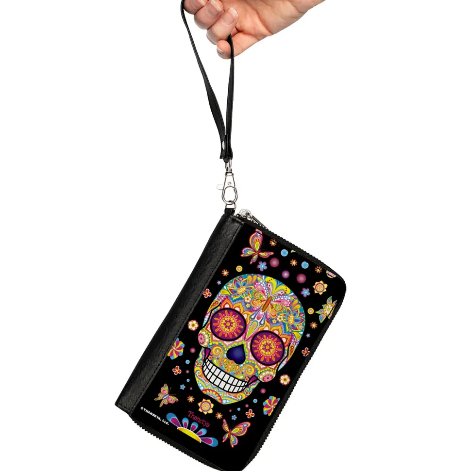 You’re going to love this wallet! Stylish and sleek this zip around wallet is made from premium vegan leather. It measures 7.5×4.5×1.0 Inches and features 2 billfolds, 6 card slots, 1 coin zipper, 1 windowed ID holder slot and a detachable wristlet strap for easy carrying. This wallet is spacious enough to carry large smartphones such as the iPhone 8 Plus, iPhone 11 Max. Galaxy Note 10 Plus and more! The gorgeous artwork is applied using the latest printing technology so it will hold up well over time. This product is Made in USA by Buckle-Down Inc. and Officially Licensed by Thaneeya McArdle.