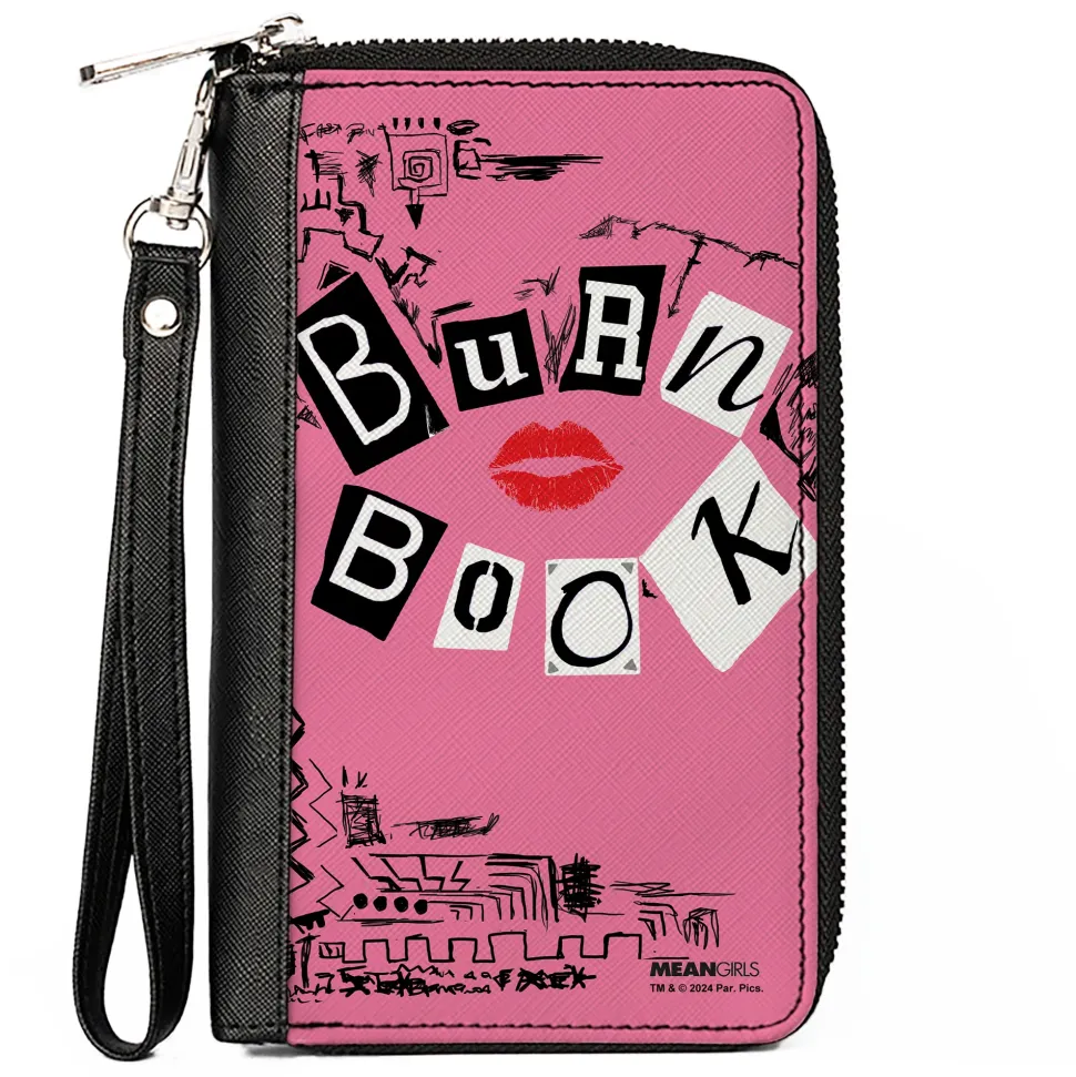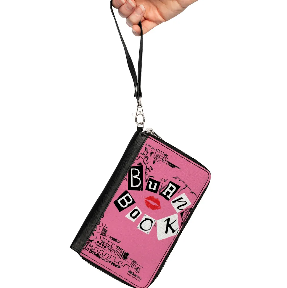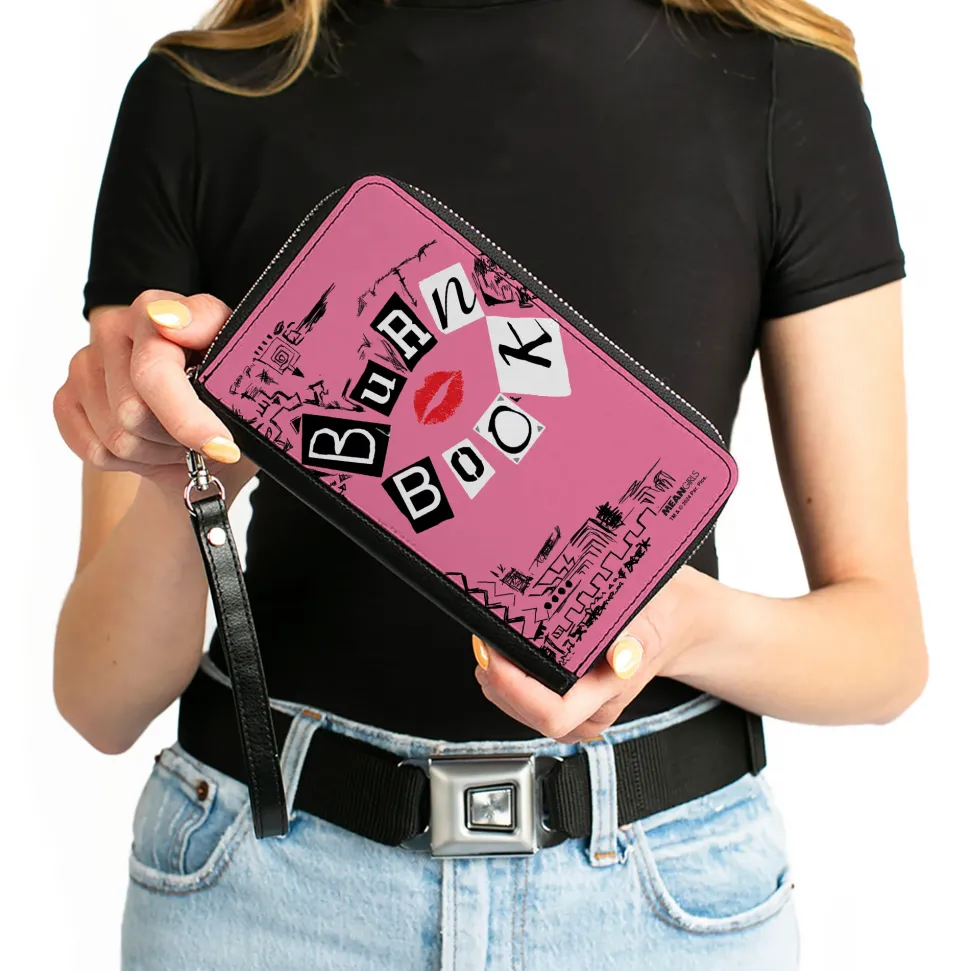 PU Zip Around Wallet Rectangle – Mean Girls BURN BOOK Cover Doodles Pink