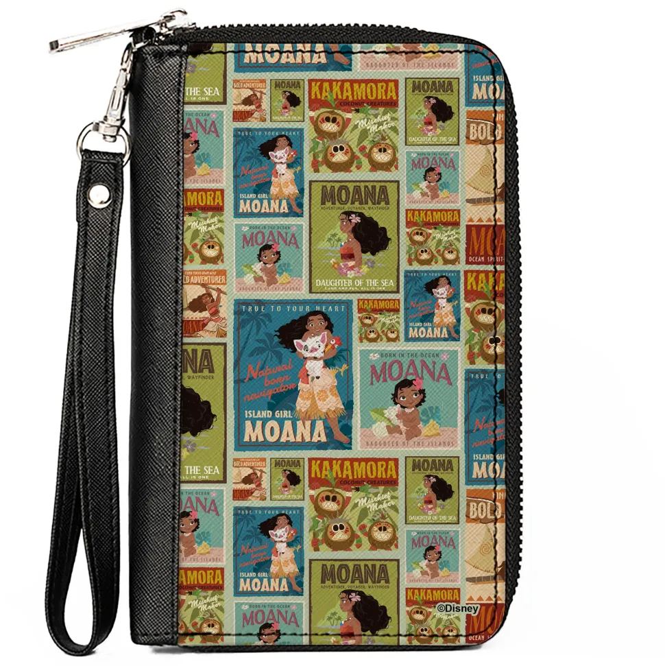 PU Zip Around Wallet Rectangle - Moana Character Pose Blocks Collage