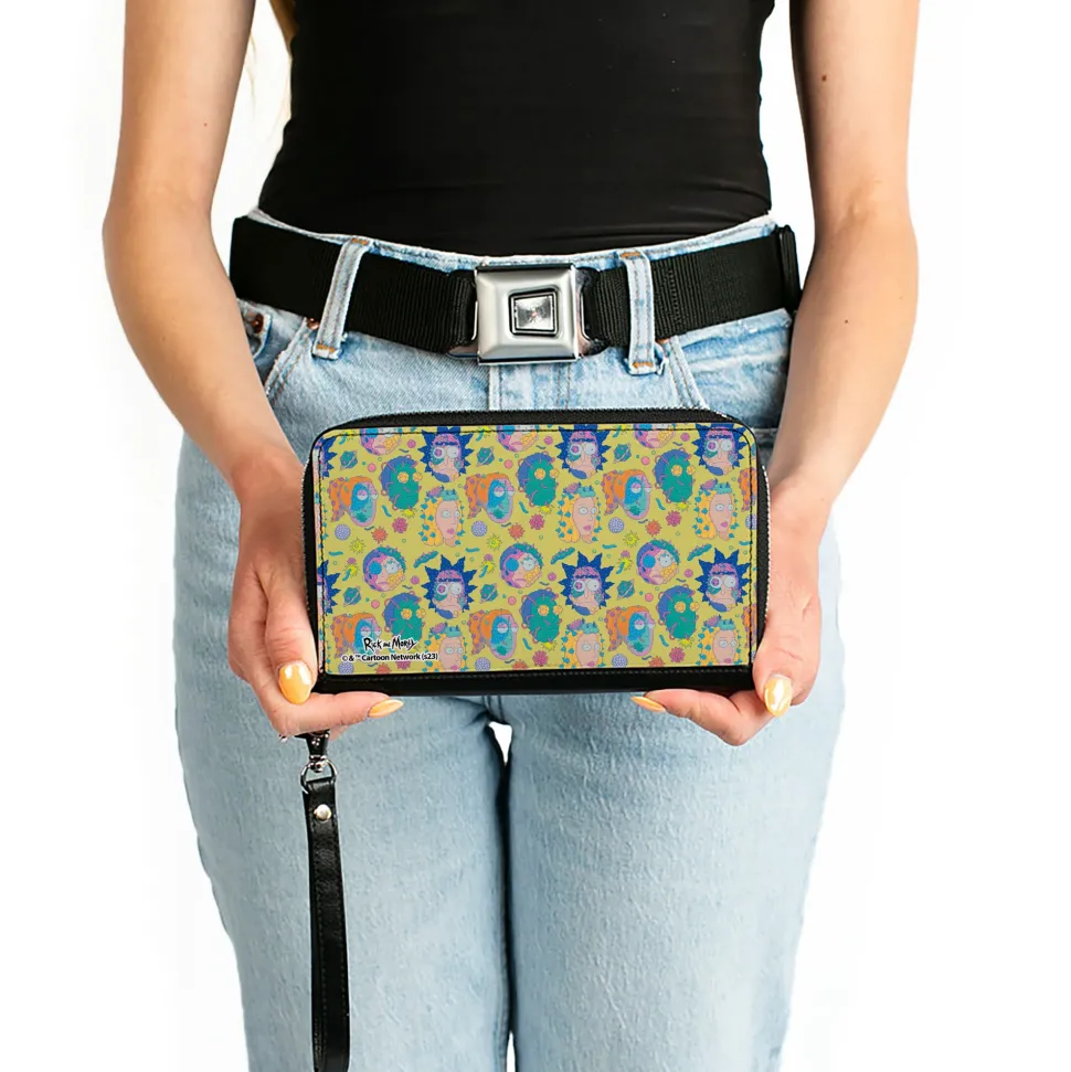 You’re going to love this wallet! Stylish and sleek this zip around wallet is made from premium vegan leather. It measures 7.5×4.5×1.0 Inches and features 2 billfolds, 6 card slots, 1 coin zipper, 1 windowed ID holder slot and a detachable wristlet strap for easy carrying. This wallet is spacious enough to carry large smartphones such as the iPhone 8 Plus, iPhone 11 Max. Galaxy Note 10 Plus and more! The gorgeous artwork is applied using the latest printing technology so it will hold up well over time. This product is Made in USA by Buckle-Down Inc. and Officially Licensed by Rick and Morty,