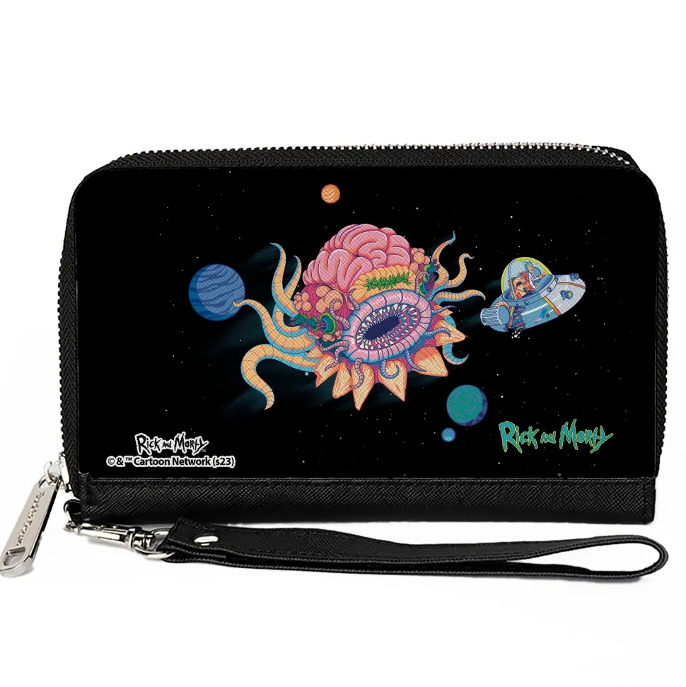 You’re going to love this wallet! Stylish and sleek this zip around wallet is made from premium vegan leather. It measures 7.5×4.5×1.0 Inches and features 2 billfolds, 6 card slots, 1 coin zipper, 1 windowed ID holder slot and a detachable wristlet strap for easy carrying. This wallet is spacious enough to carry large smartphones such as the iPhone 8 Plus, iPhone 11 Max. Galaxy Note 10 Plus and more! The gorgeous artwork is applied using the latest printing technology so it will hold up well over time. This product is Made in USA by Buckle-Down Inc. and Officially Licensed by Rick and Morty,