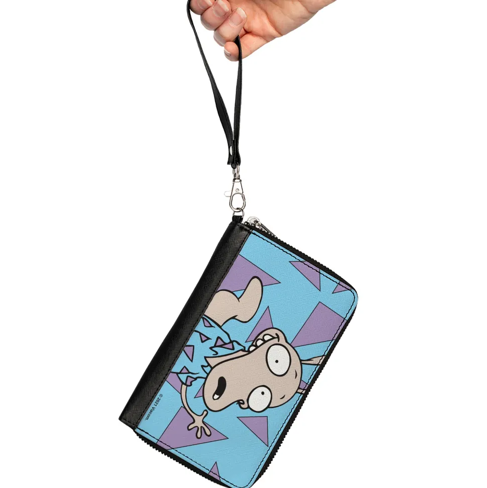 PU Zip Around Wallet Rectangle – Rocko's Modern Life Rocko Waving Pose Triangles Blue Purple