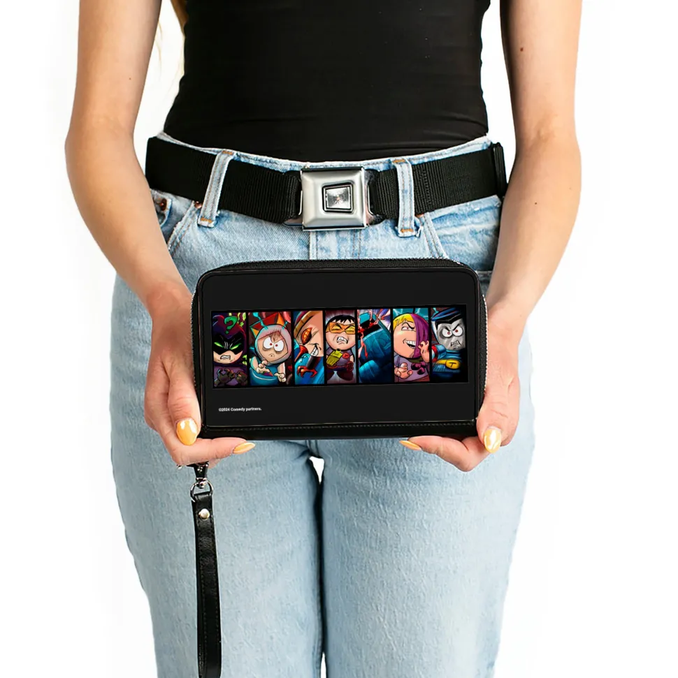 You’re going to love this wallet! Stylish and sleek this zip around wallet is made from premium vegan leather. It measures 7.5×4.5×1.0 Inches and features 2 billfolds, 6 card slots, 1 coin zipper, 1 windowed ID holder slot and a detachable wristlet strap for easy carrying. This wallet is spacious enough to carry large smartphones such as the iPhone 8 Plus, iPhone 11 Max. Galaxy Note 10 Plus and more! The gorgeous artwork is applied using the latest printing technology so it will hold up well over time. This product is assembled in the USA by Buckle-Down Inc. and Officially Licensed by Comedy Central.