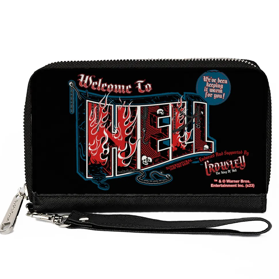 You’re going to love this wallet! Stylish and sleek this zip around wallet is made from premium vegan leather. It measures 7.5×4.5×1.0 Inches and features 2 billfolds, 6 card slots, 1 coin zipper, 1 windowed ID holder slot and a detachable wristlet strap for easy carrying. This wallet is spacious enough to carry large smartphones such as the iPhone 8 Plus, iPhone 11 Max. Galaxy Note 10 Plus and more! The gorgeous artwork is applied using the latest printing technology so it will hold up well over time. This product is assembled in the USA by Buckle-Down Inc. and Officially Licensed by Supernatural.