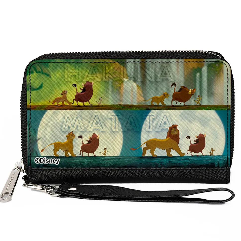 PU Zip Around Wallet Rectangle – The Lion King HAKUNA MATATA Simba Pumbaa Timon Growing Up Poses Scenes