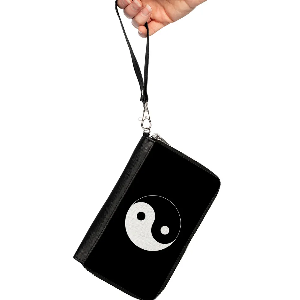 PU Zip Around Wallet Rectangle – Yin Yang Symbol Black/White