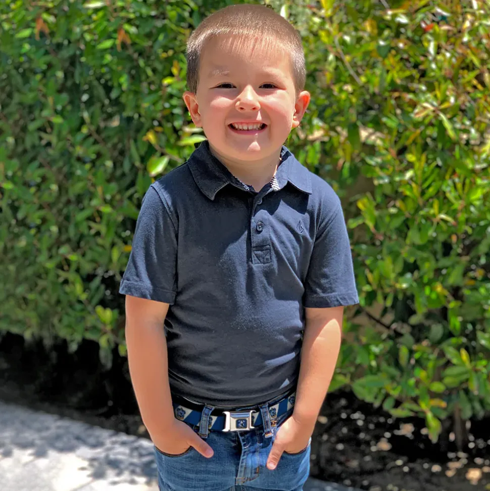 RAVENCLAW Crest Full Color Blue Seatbelt Belt – RAVENCLAW Crest Diagonal Stripe Gray/Blue Webbing
