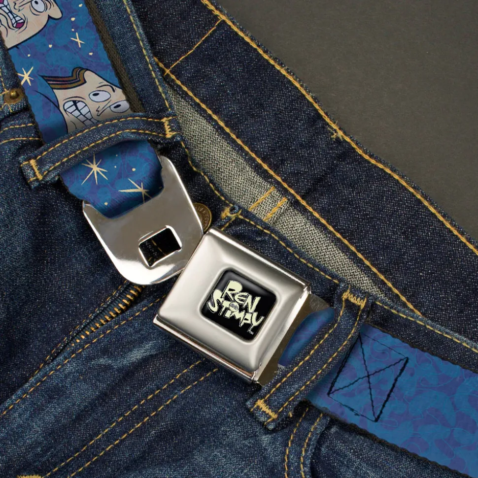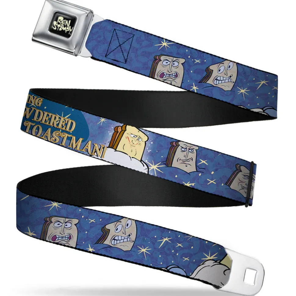 Ren & Stimpy Pose Full Color Black Seatbelt Belt – Powdered Toastman in Sky CALLING POWDERED TOASTMAN! Blue/Yellow Webbing