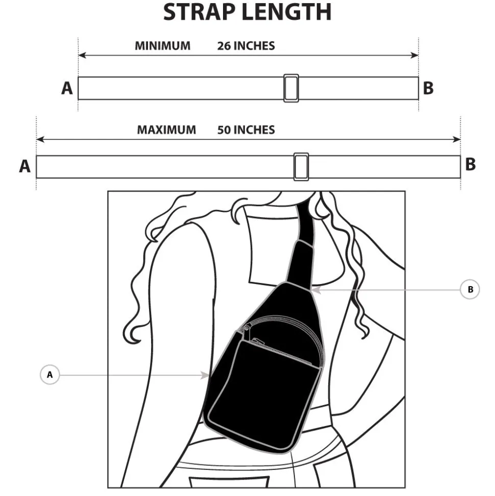 - Stylish and sleek, this cross body sling bag is made from premium vegan leather and measures 11.0 x 6.5 x 2.0 Inches and comes with a 26-50″ adjustable strap.